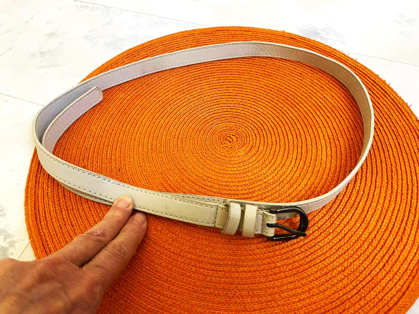 nosený tenký opasok v krémovo sivej farbe,šírka = 2 cm, dlžka = 114 cm