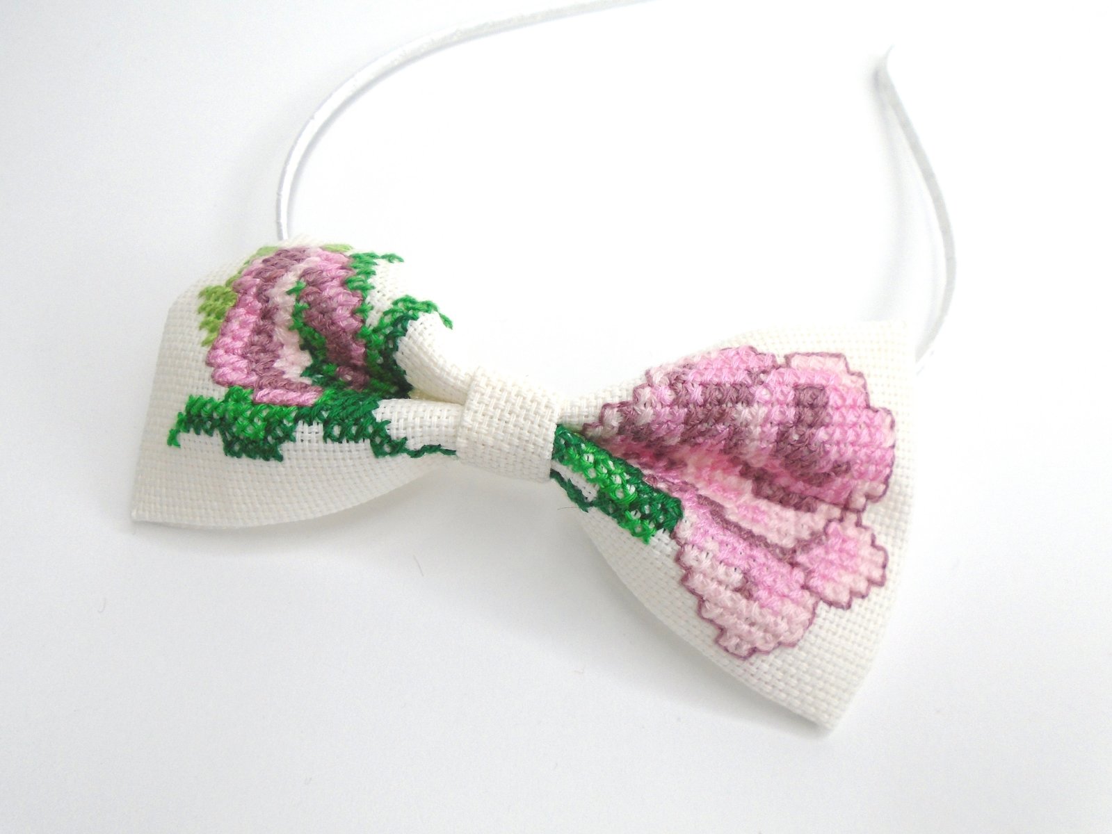 SkladomFolk čelenka s krížikovým stehom, ktorá sú určená pre dievčatá a pre dámy, ktoré majú radi ľudové vzory a mašličky.