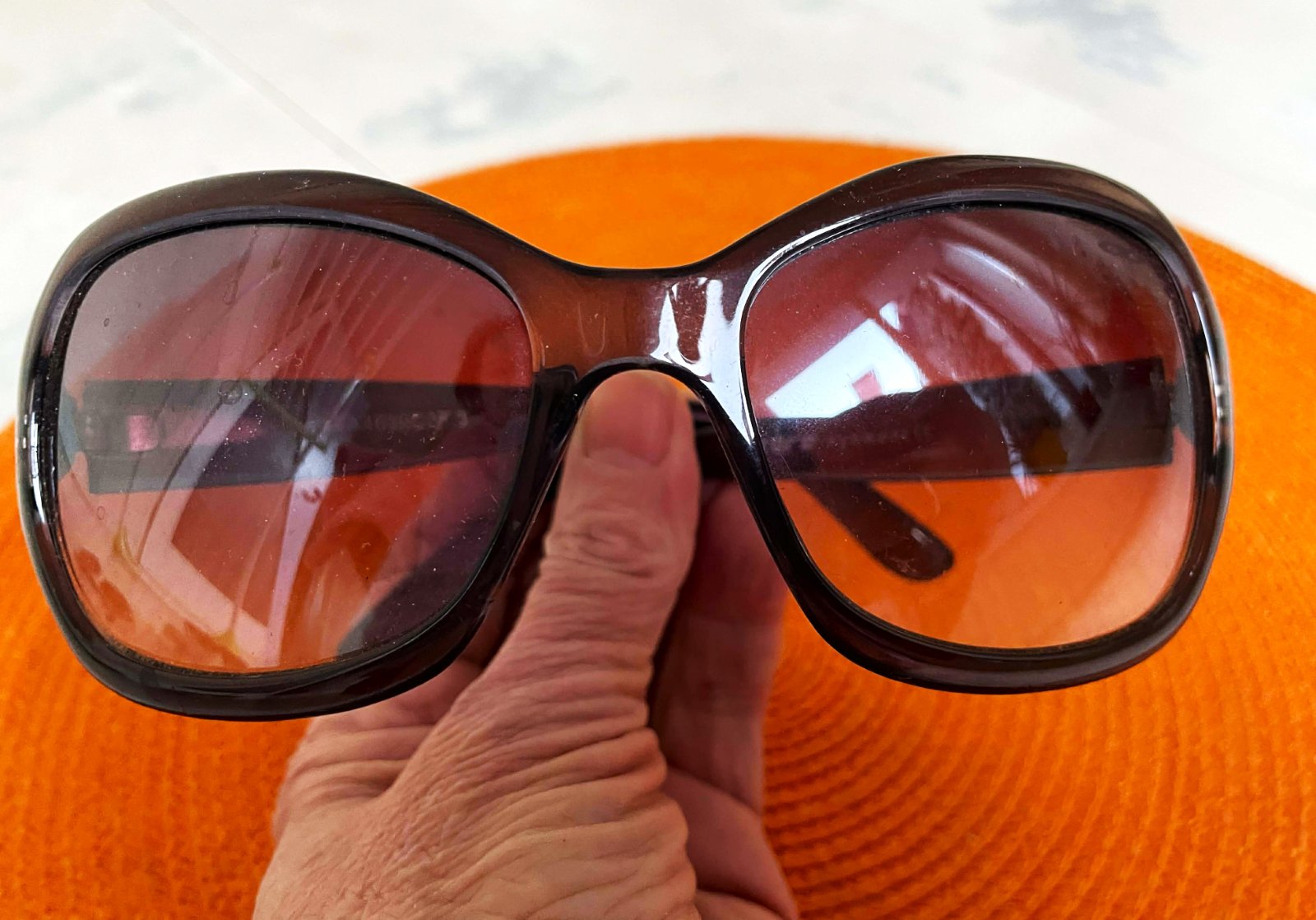 veľmi moderné,vkusné okuliare,top stav,krásne tónované skla,rám je sivočierny ako keby jemne priesvitný,nie uhľovo čierny