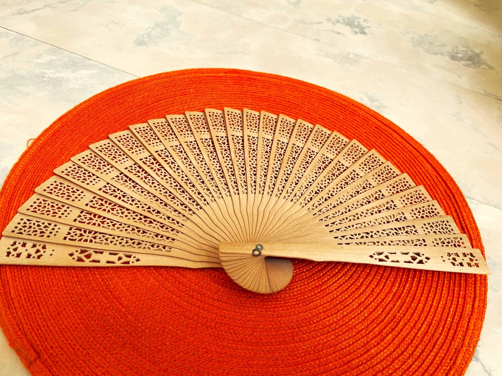 krásny drevený vyrezávaný čipkovanou metódou,super vec na horúce leto,zujímavý a vkusný,málo používaný..