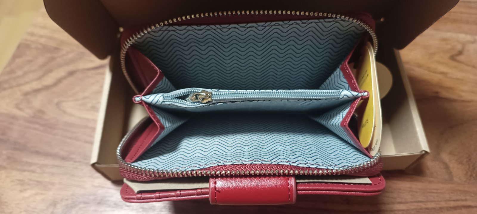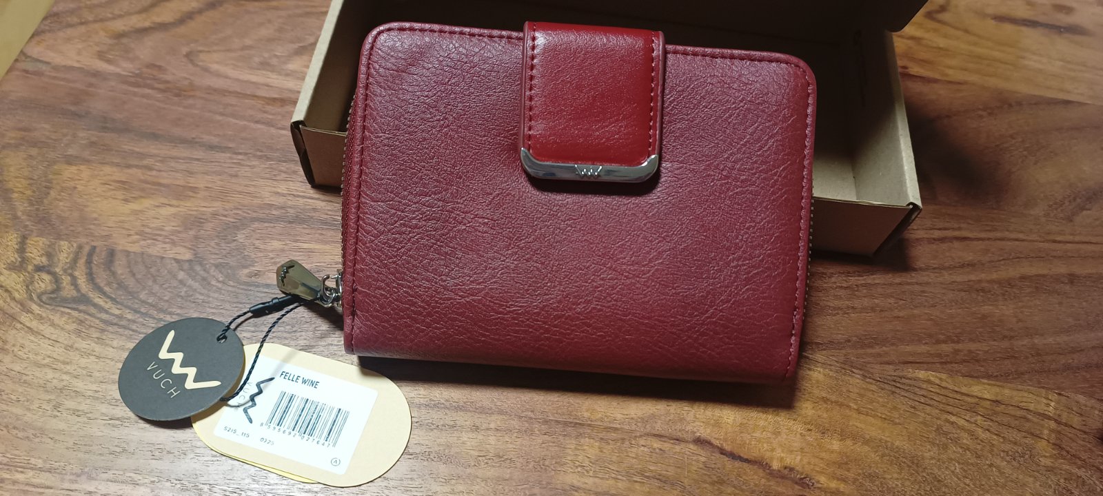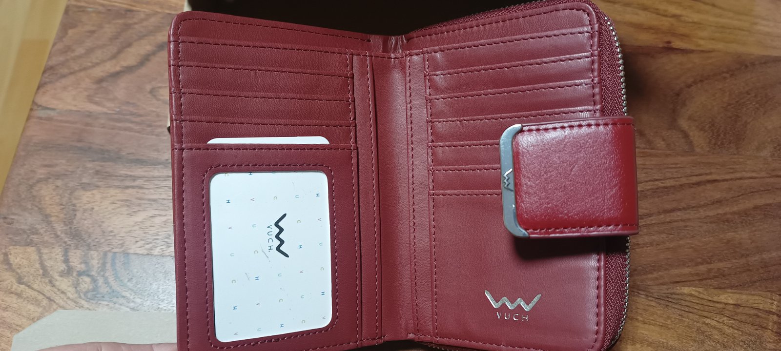Ponúkam na predaj úplne novú dámsku peňaženku Vuch Felle Wine v darčekovom balení. Pôvodná cena 24,90. Nová, len vybalená na fotenie. Peňaženka v krásnom dizajne, má oddelenú priehradku na mince na zips, priehradku na bankovky, priestor pre karty, kovovy zips. Veľmi pekná, odporúčam. Vhodné ako darček