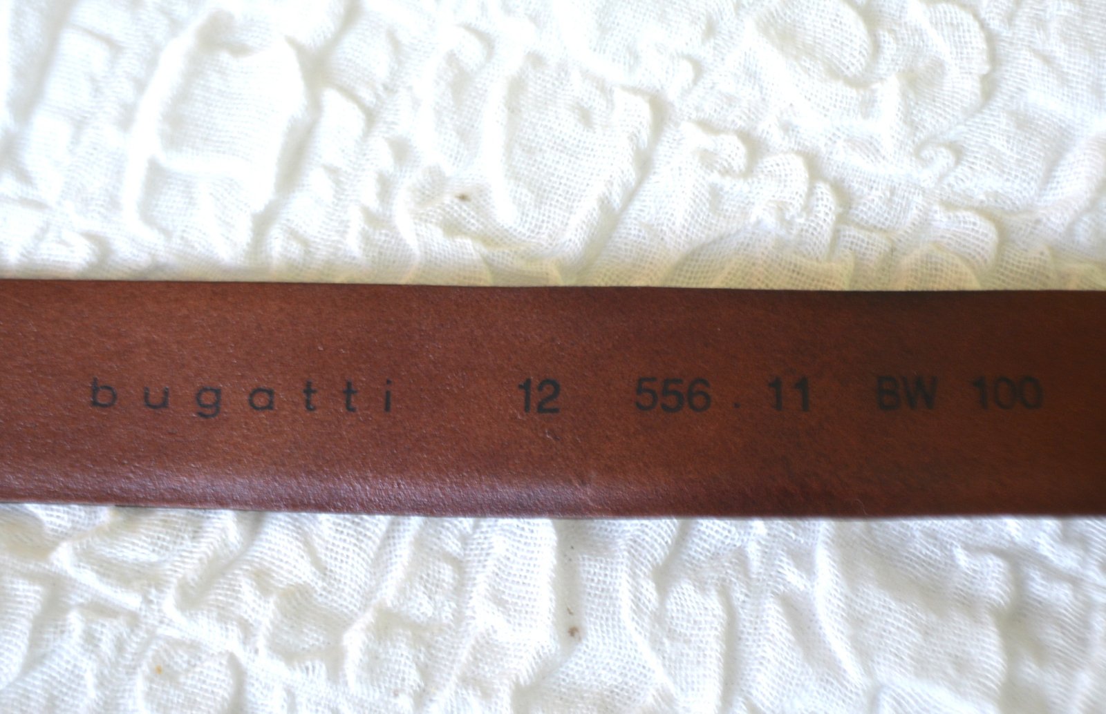 Kvalitný kožený opasok nemeckej značky Bugatti so striebornou prackou.