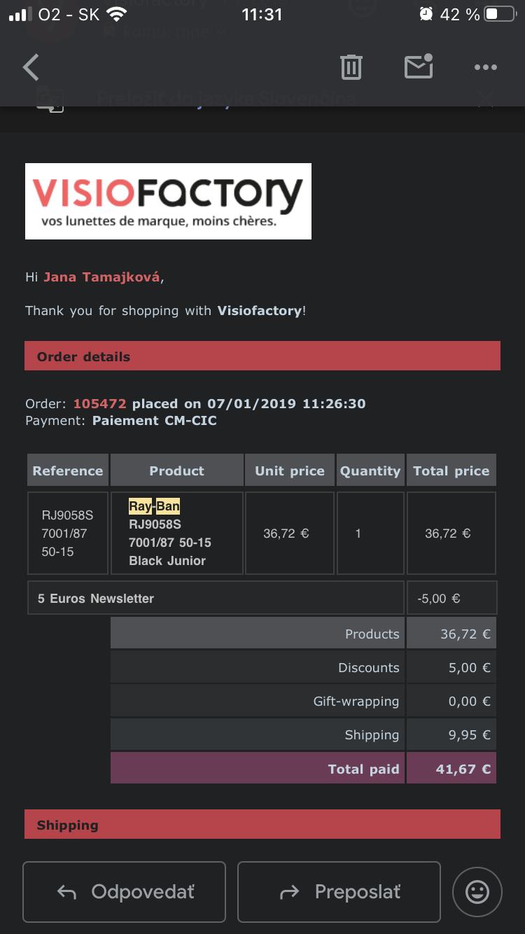 Kupene z francuzskej optiky Visio Factory. Povodna cena 41€. Doklad o kupe v galerii.