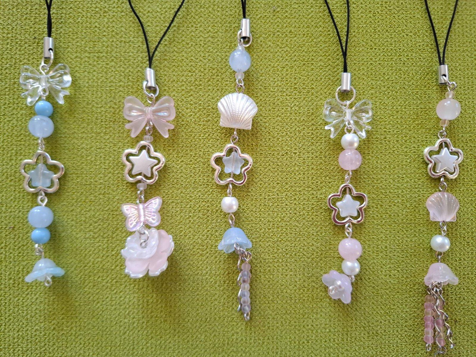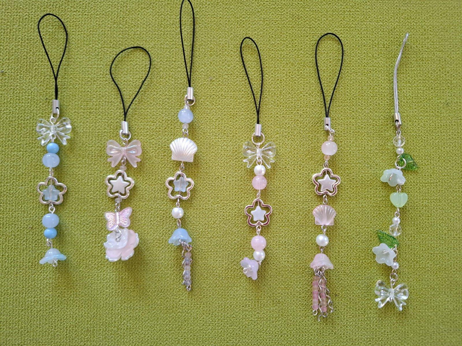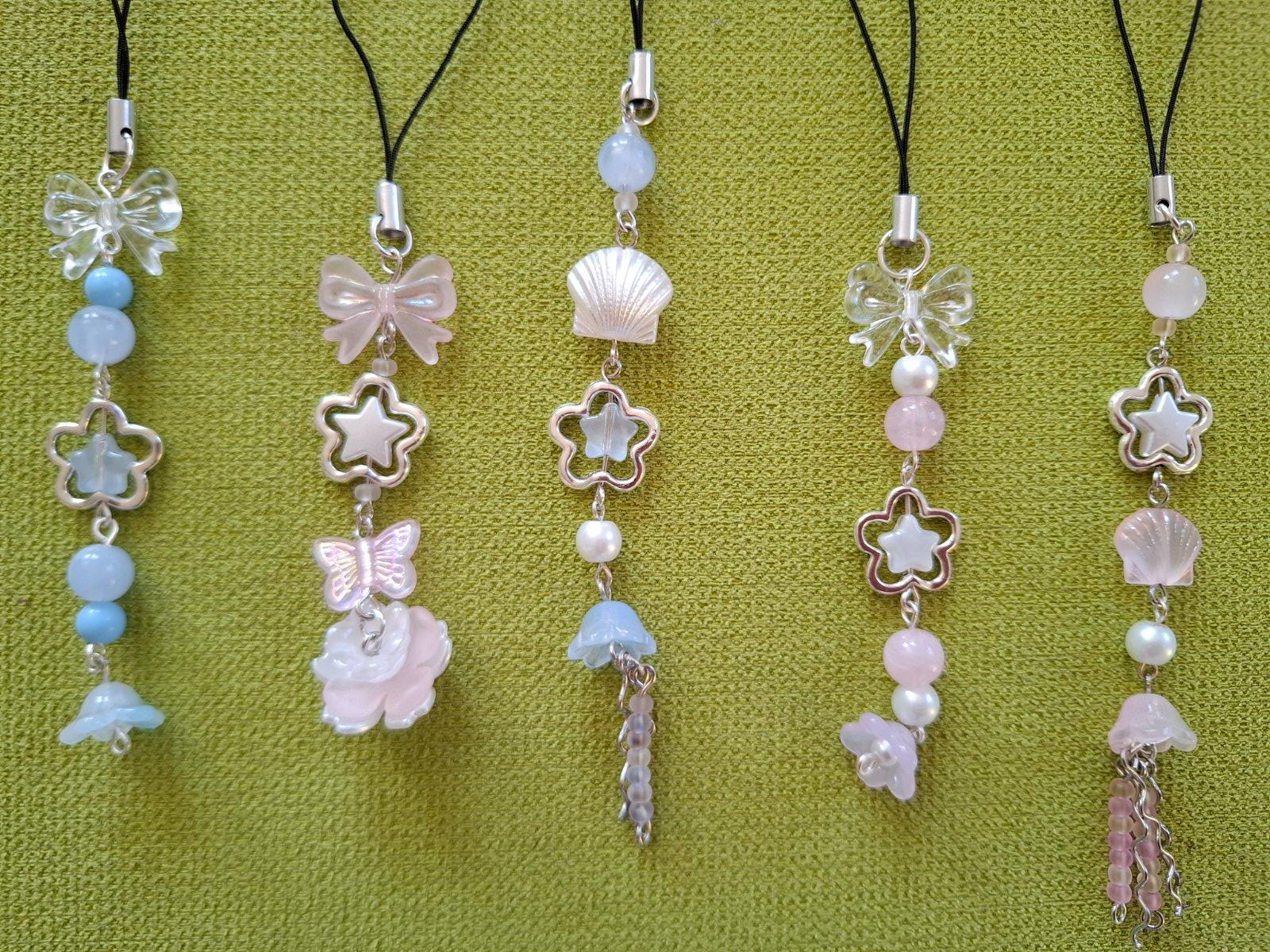 Ručne robené prívesky na kľúčenku, kabelku a podobne. V jemných, pastelových farbách.