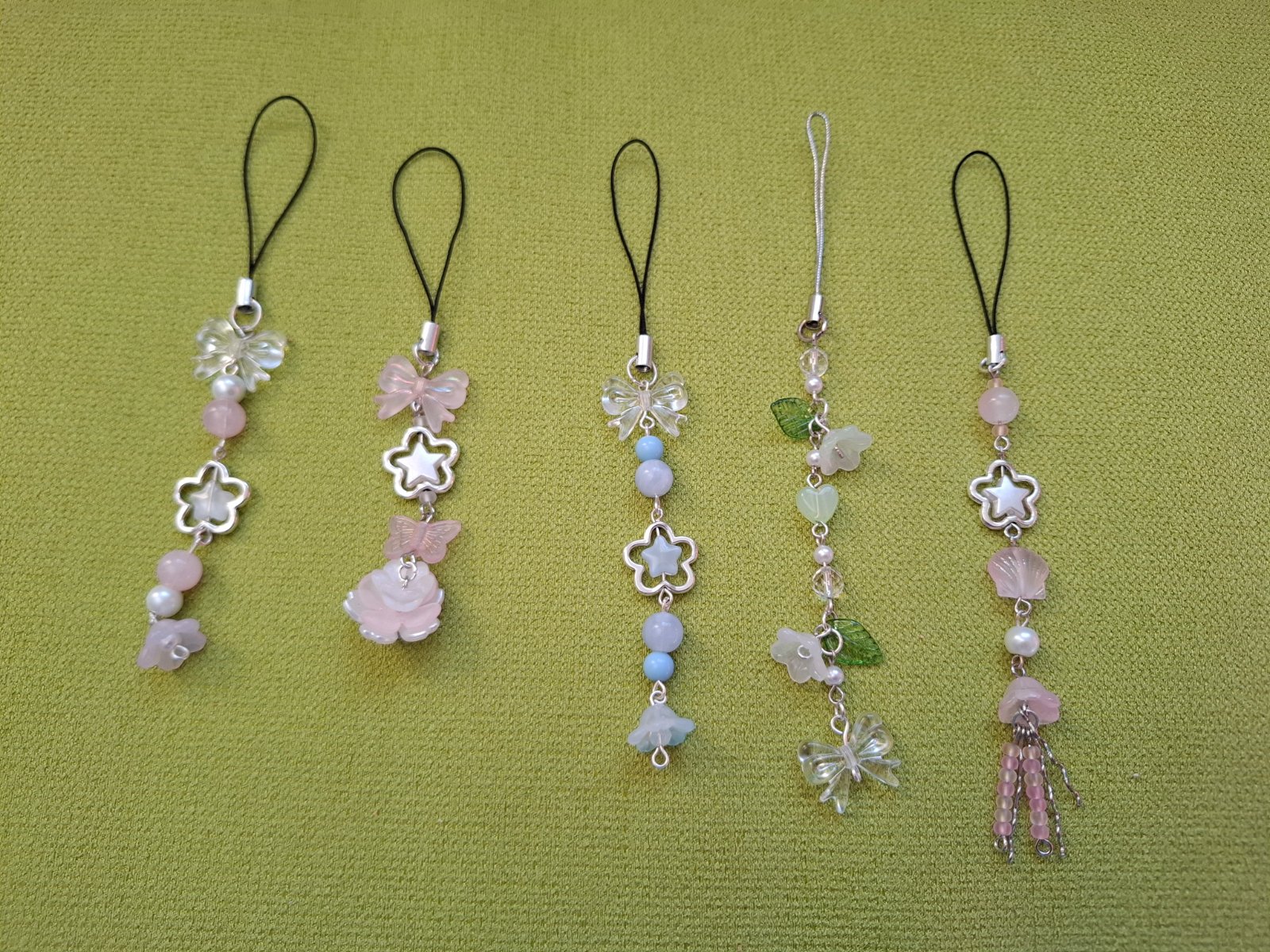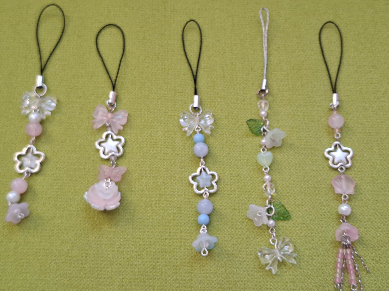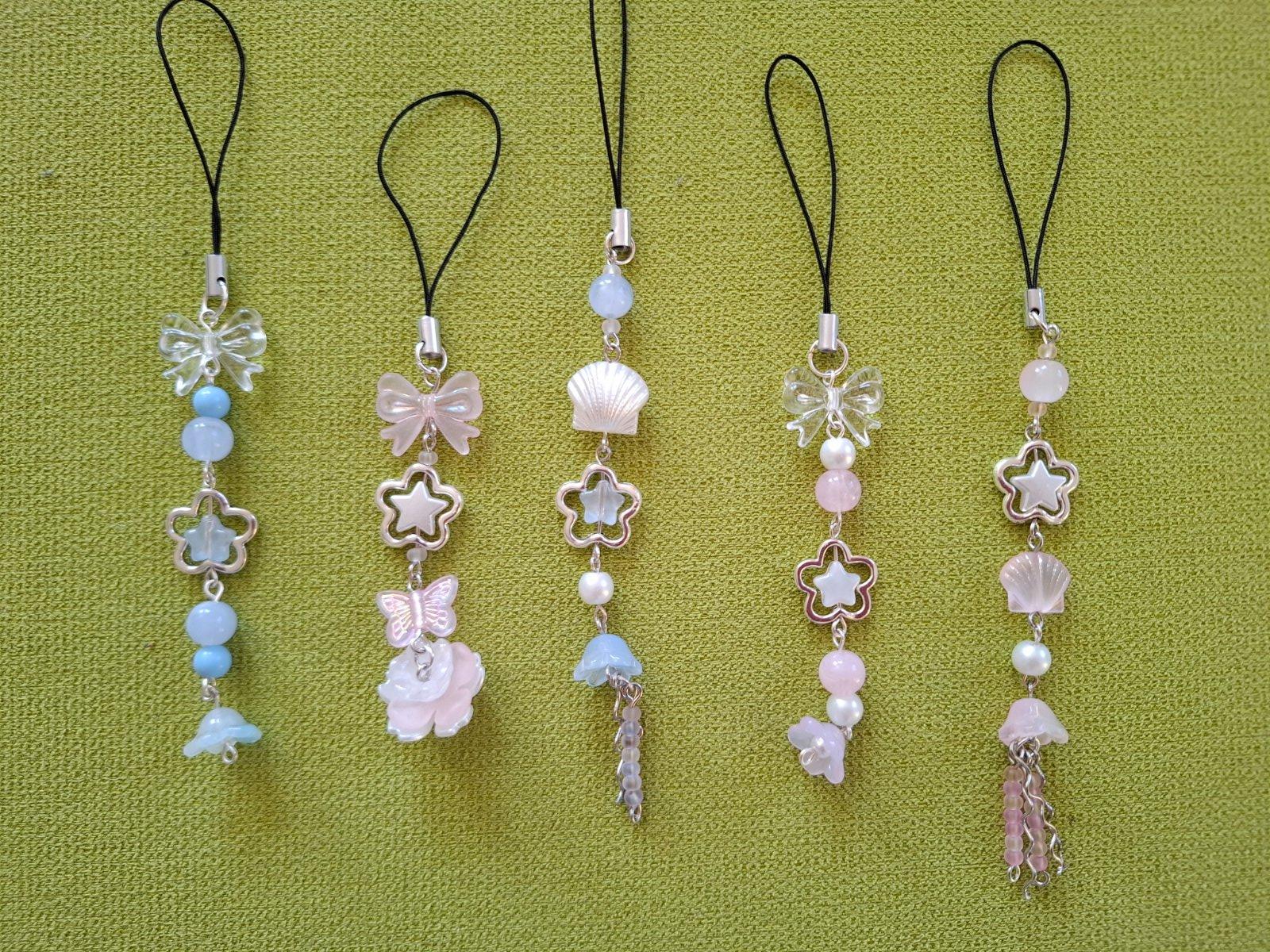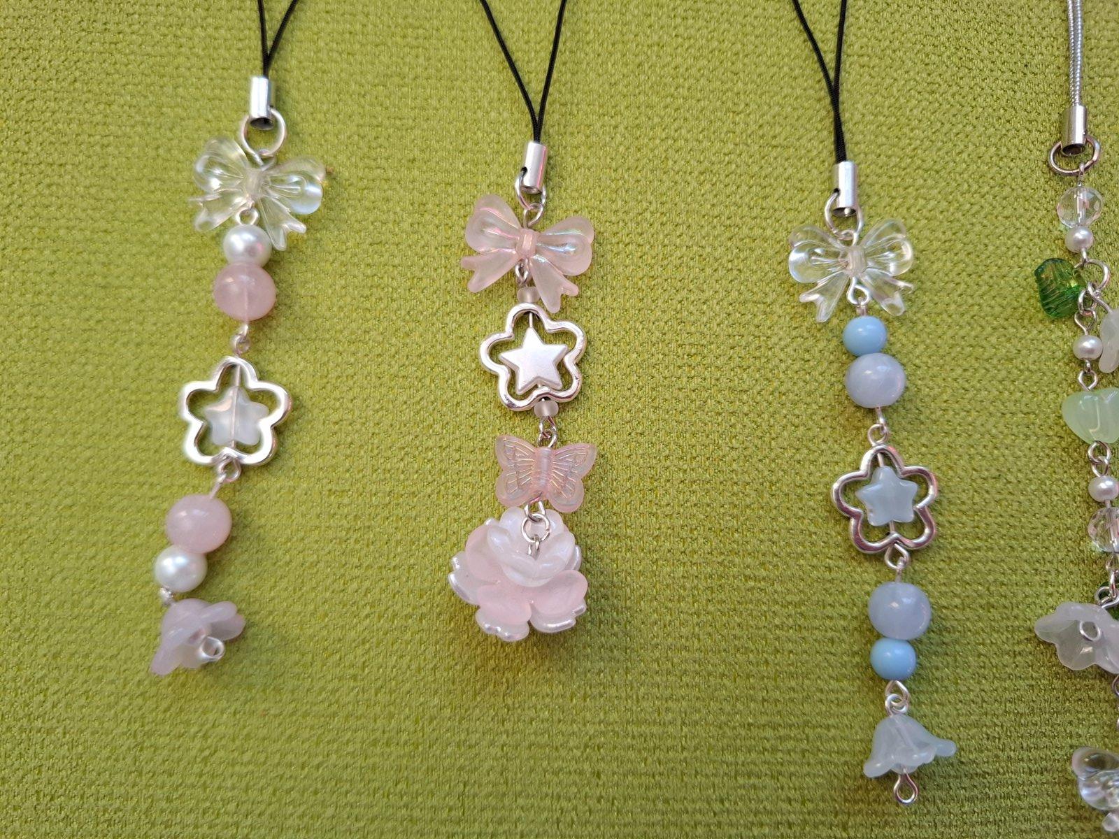 Ručne robené prívesky na kľúčenku, kabelku a podobne. V jemných, pastelových farbách.