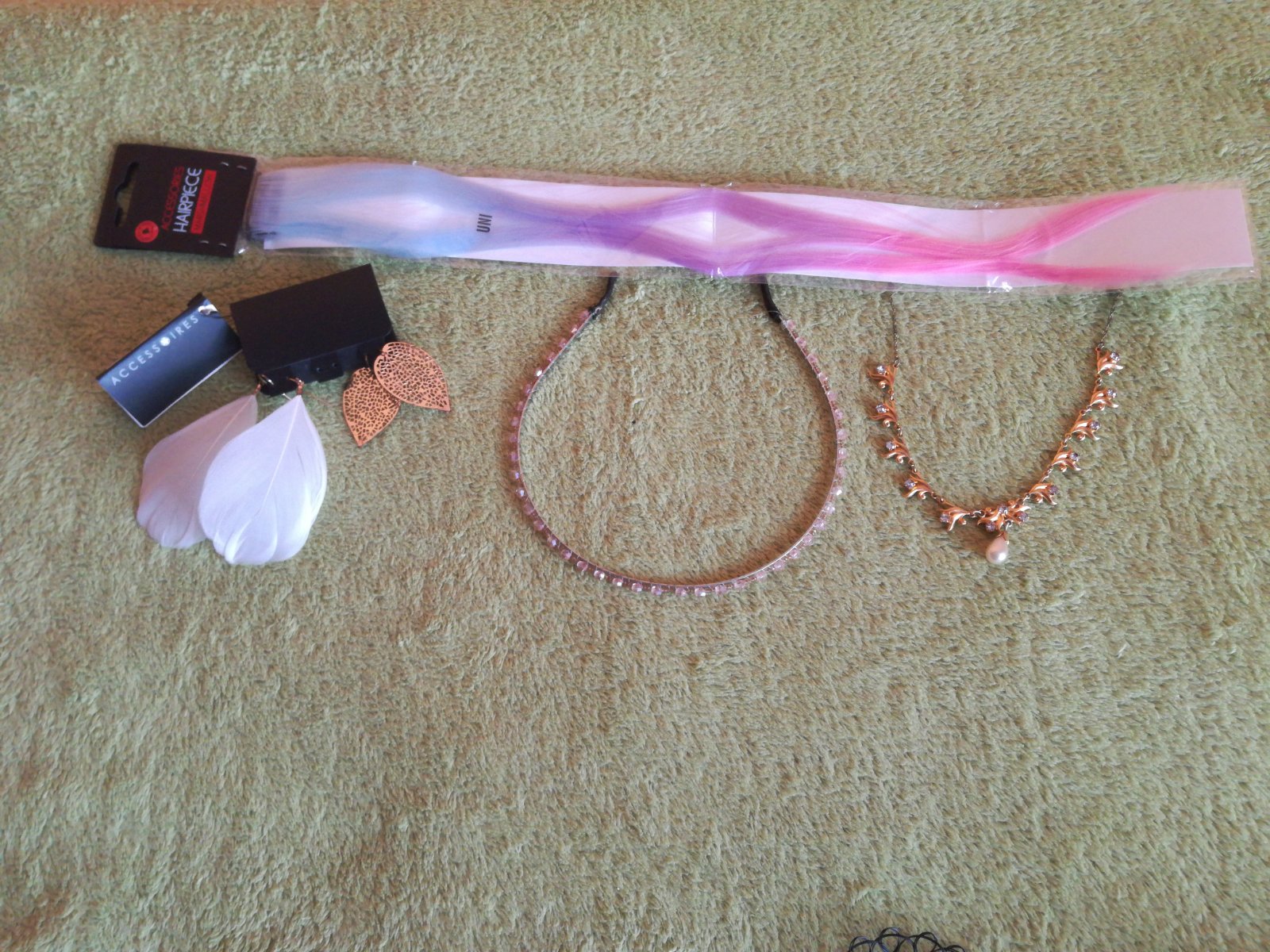 Čelenka, náhrdelník, naušnice, prameň vlasov.