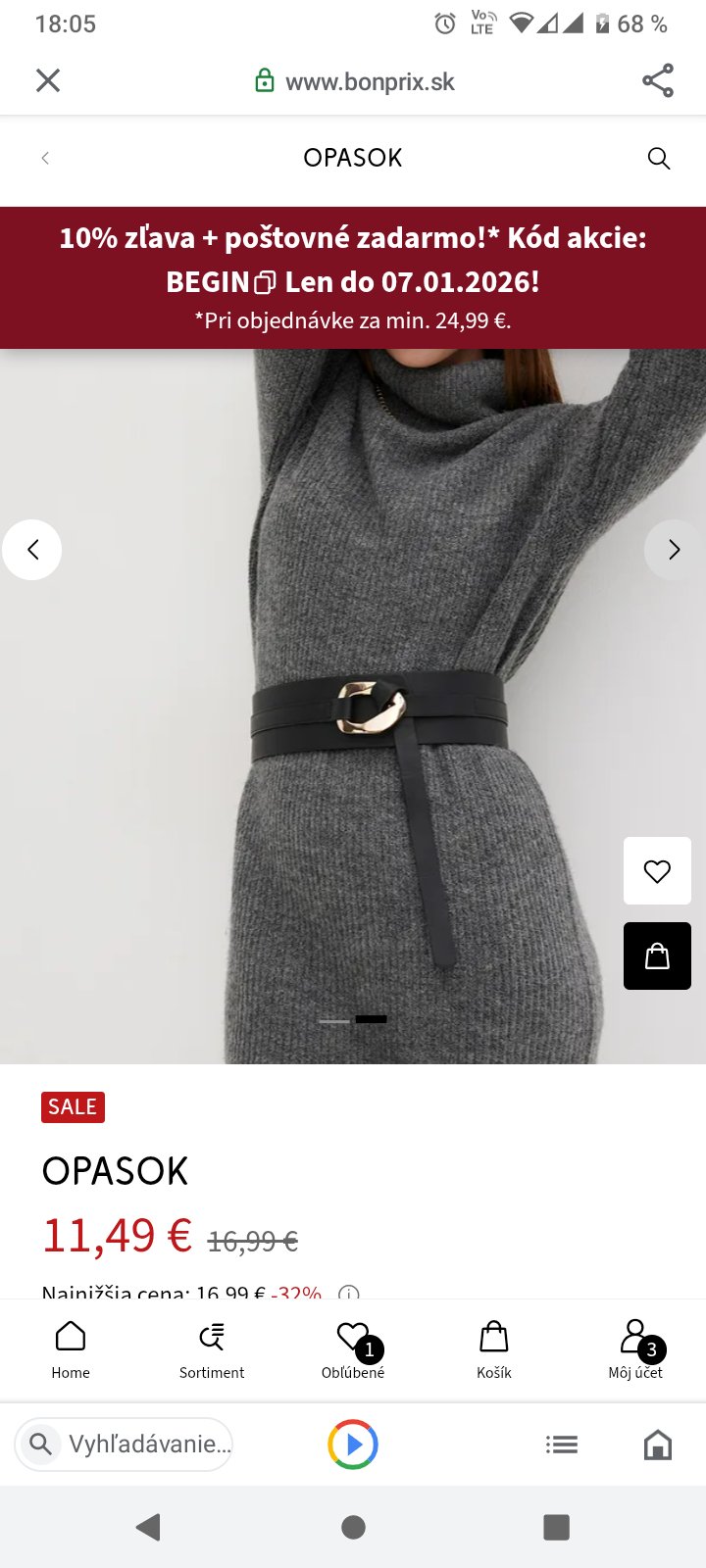 ponúkam na predaj tento nový opasok. Nesadla veľkosť (omylom som objednala 95). Na bonprixe 13 eur. Ponúkam za 8 € + pošta podľa Vášho priania.