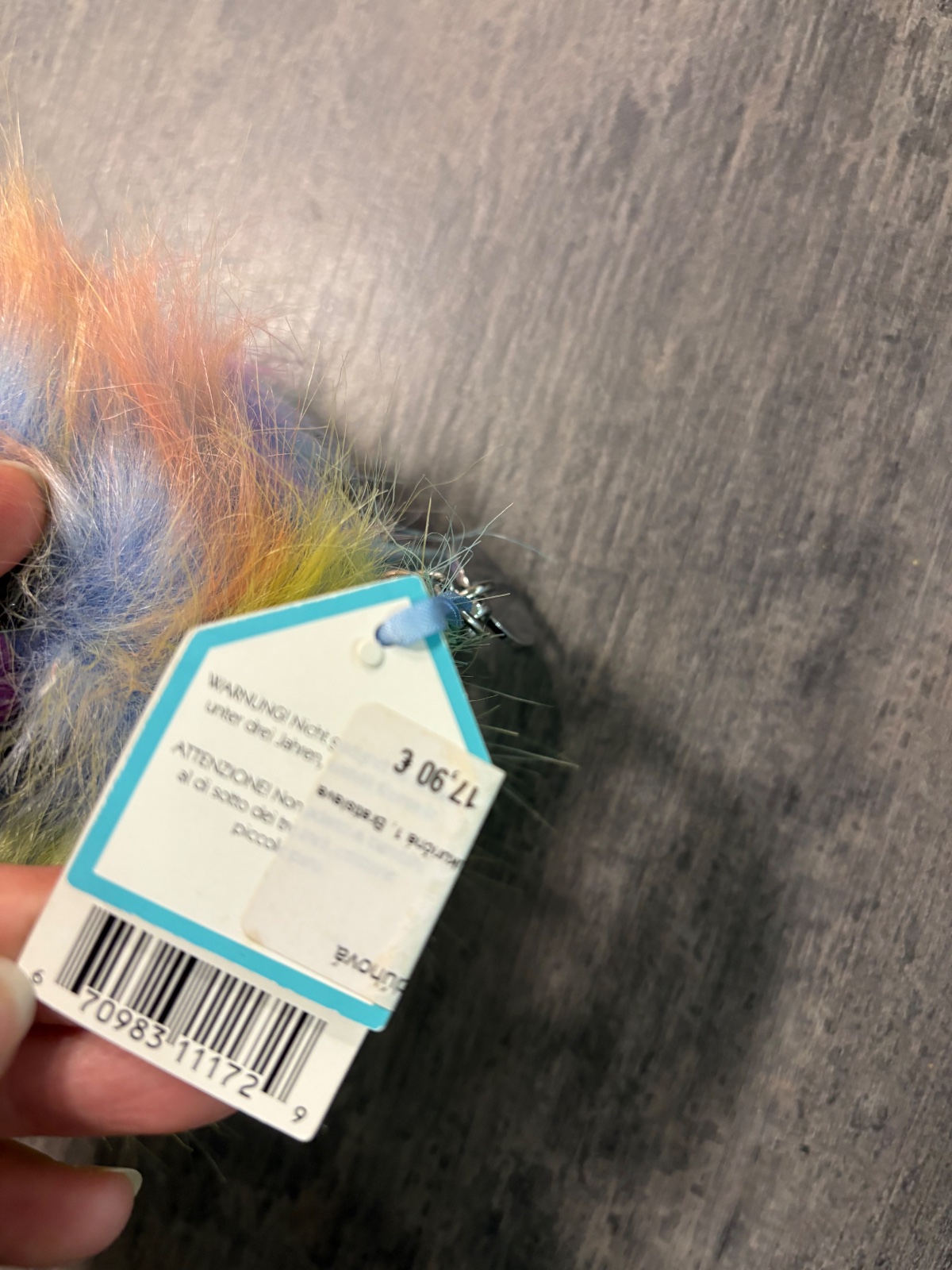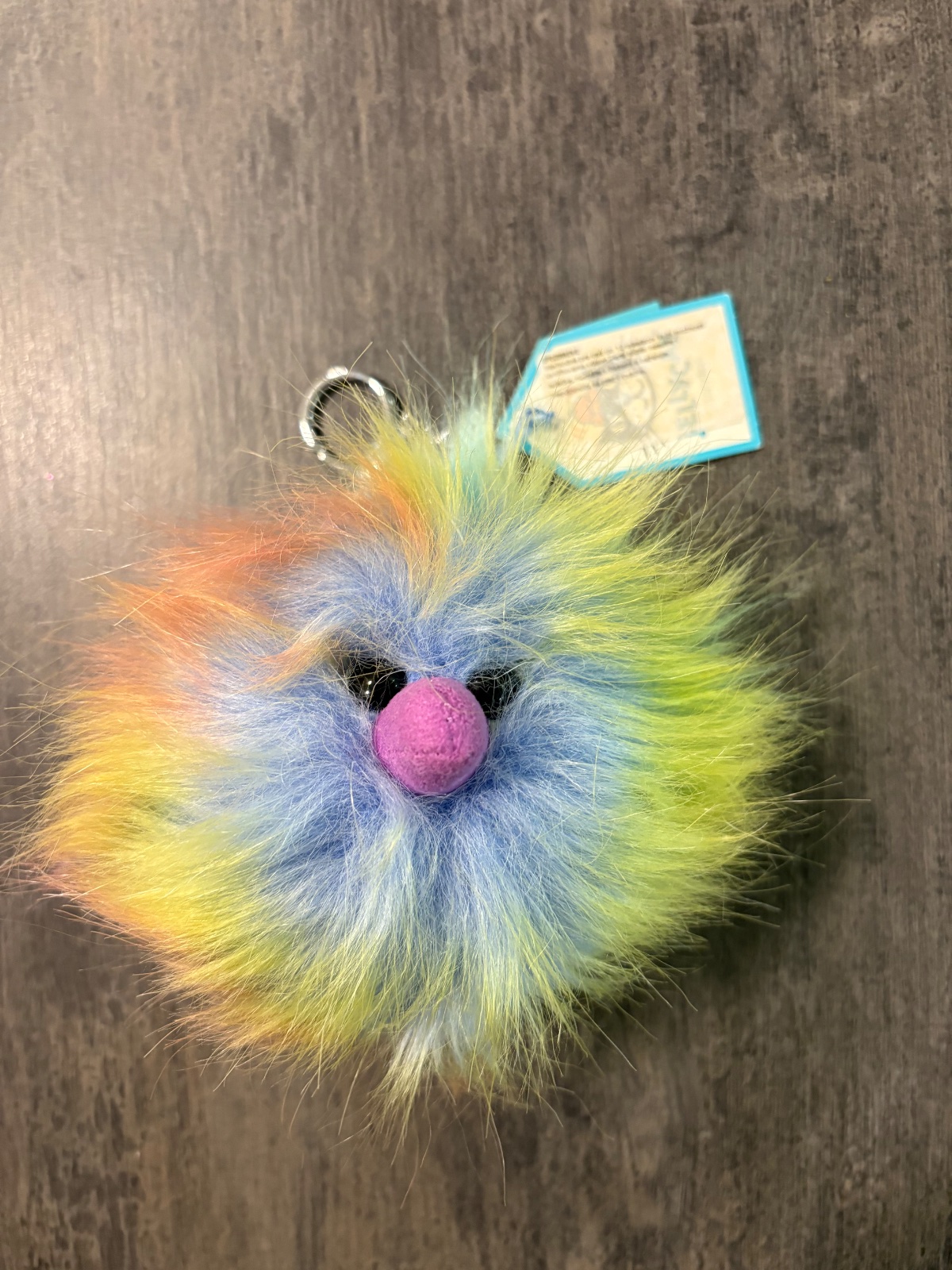 Chocholatý brmbolček s roztomilými lesklými očkami a všetečným zobáčikom ozvláštni každé kľúče či kabelku. Príjemný spoločník, mäkký na dotyk a pútavý na pohľad, v pestrých dúhových farbách.