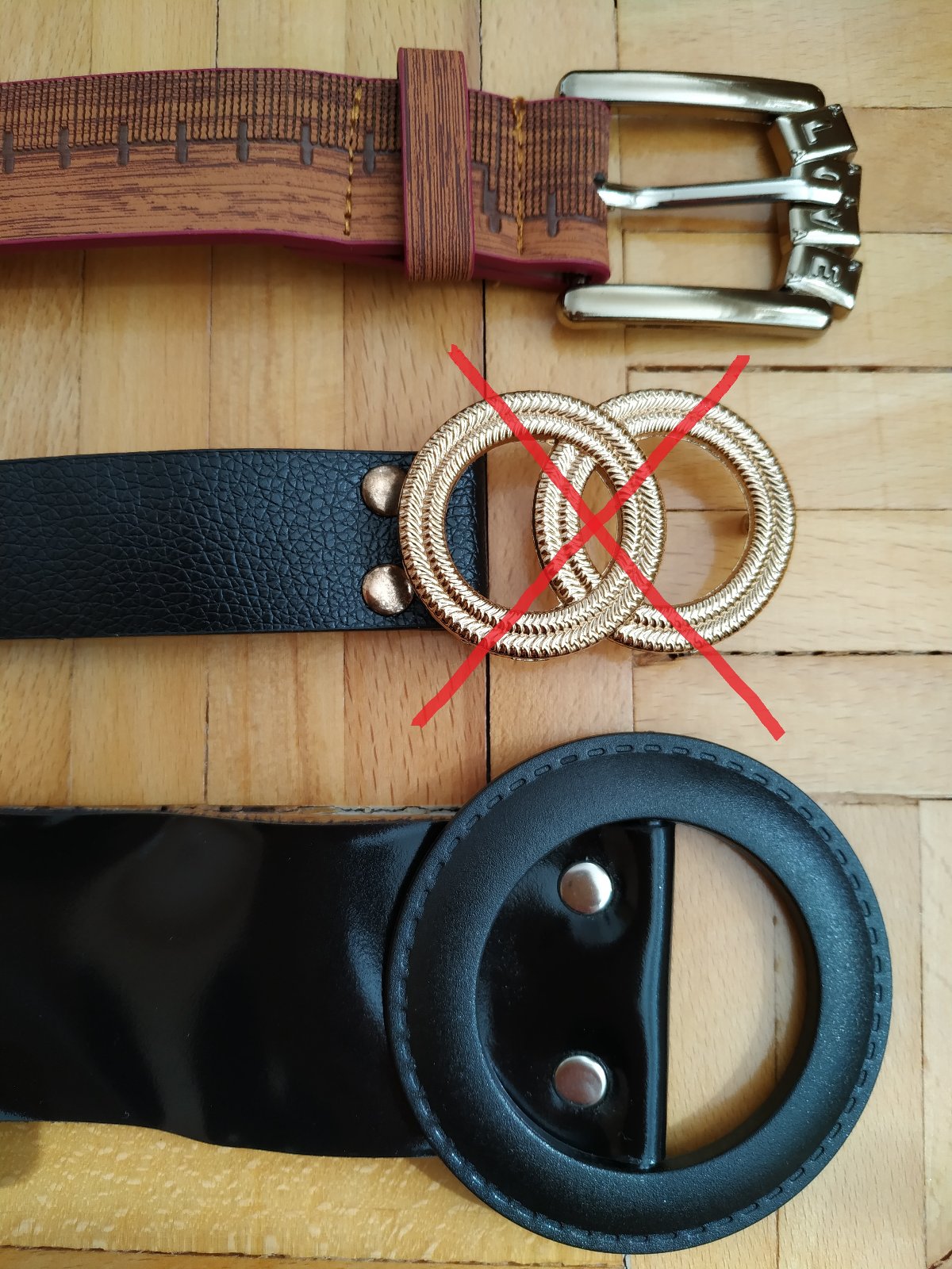 1/ HNEDÝ OPASOK s bordovým krajom. Rozmery: dĺžka 107 cm, šírka 2,5 cm, vzdialenosť prvej dierky 84 cm, poslednej dierky 95,5cm, Spona žltej farby s nápisom LOVE. Materiál: imitácia kože. C E N A: 1,00 EUR/