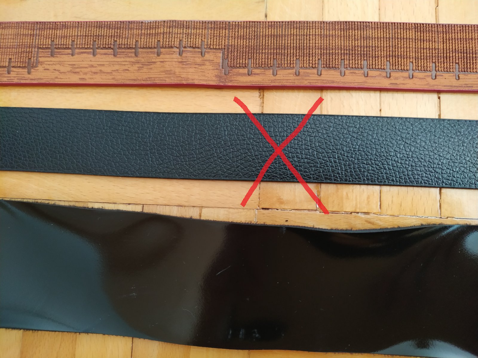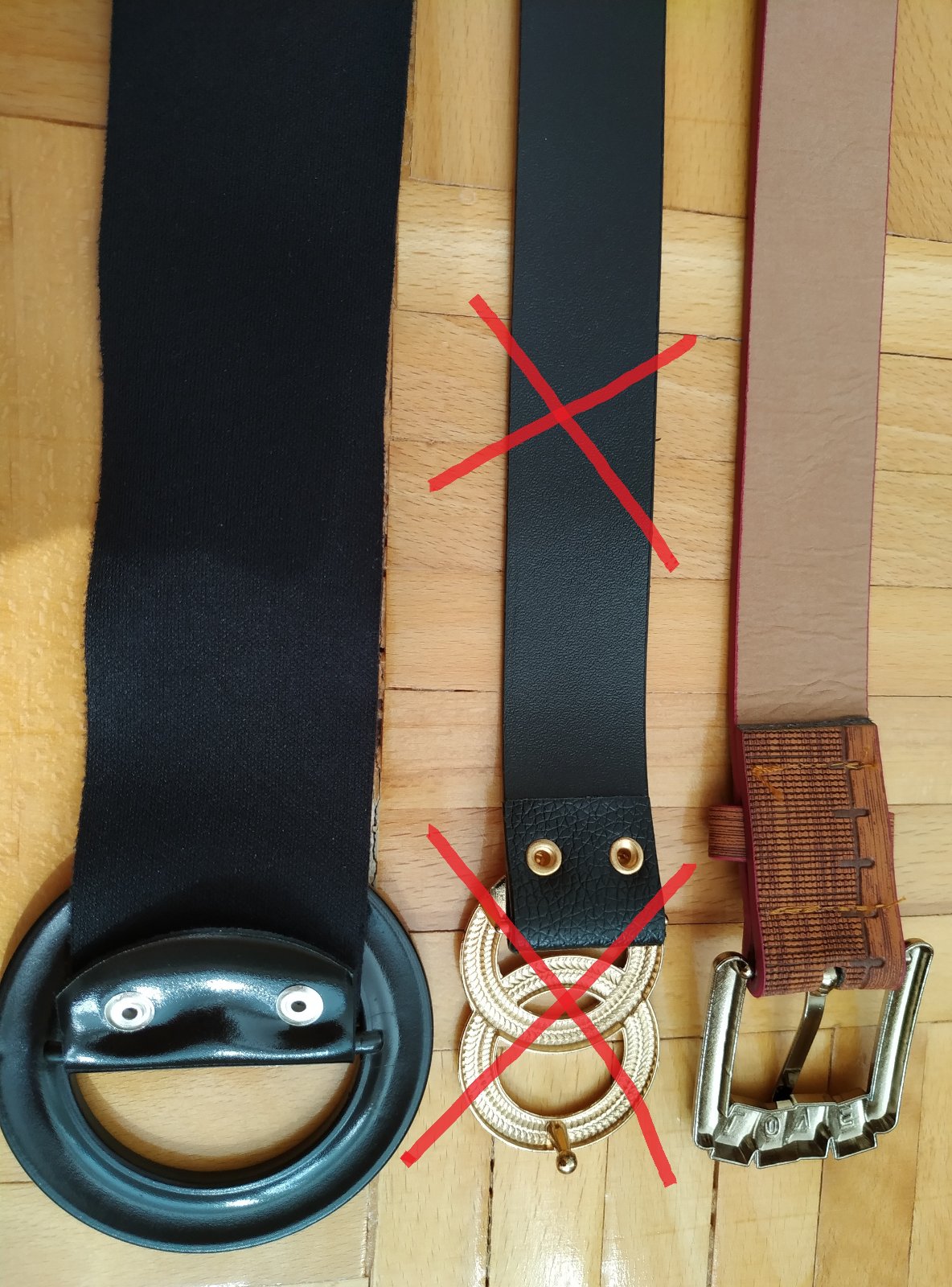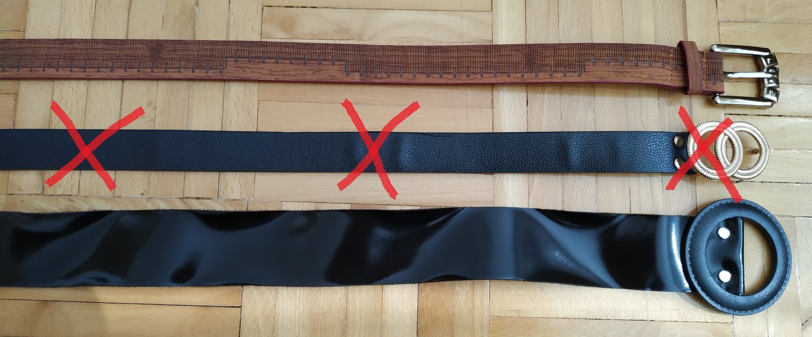 2/ ČIERNY OPASOK LESKLÝ. . Rozmery: dĺžka 112 cm, šírka 4,5 cm, priemer spony 7,5 cm, bez dierok, prevlieka sa cez sponu. Materiál: mäkký plast. C E N A: 2,50 EUR/