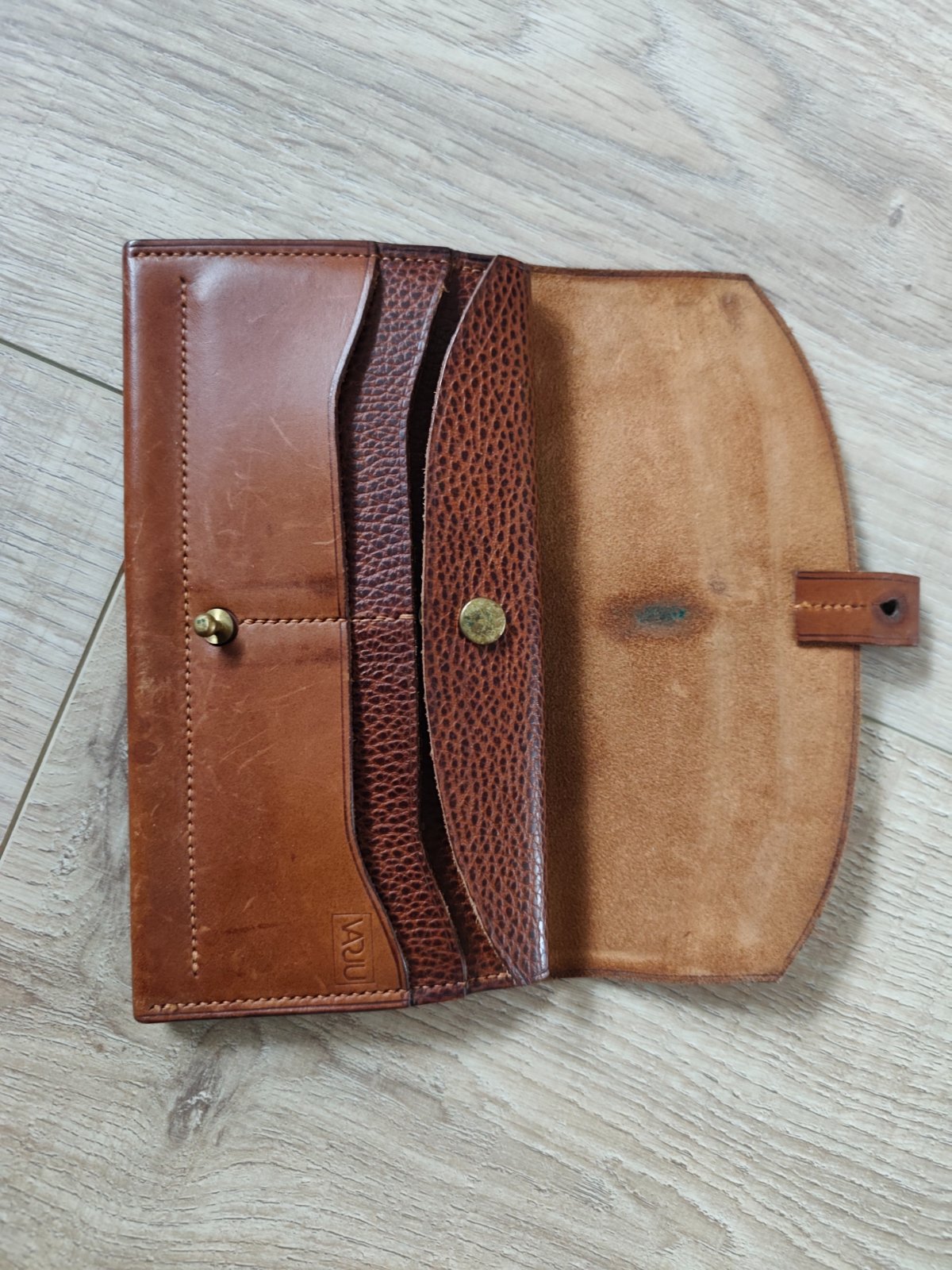 Peňaženka má dva normálne priehrady a jednu tenkú, usprostred priestor na mince, a priehradky na karty. Peňaženka bola použitá len raz, pre mňa je malá. Výška 9,50 cm Šírka 19cm