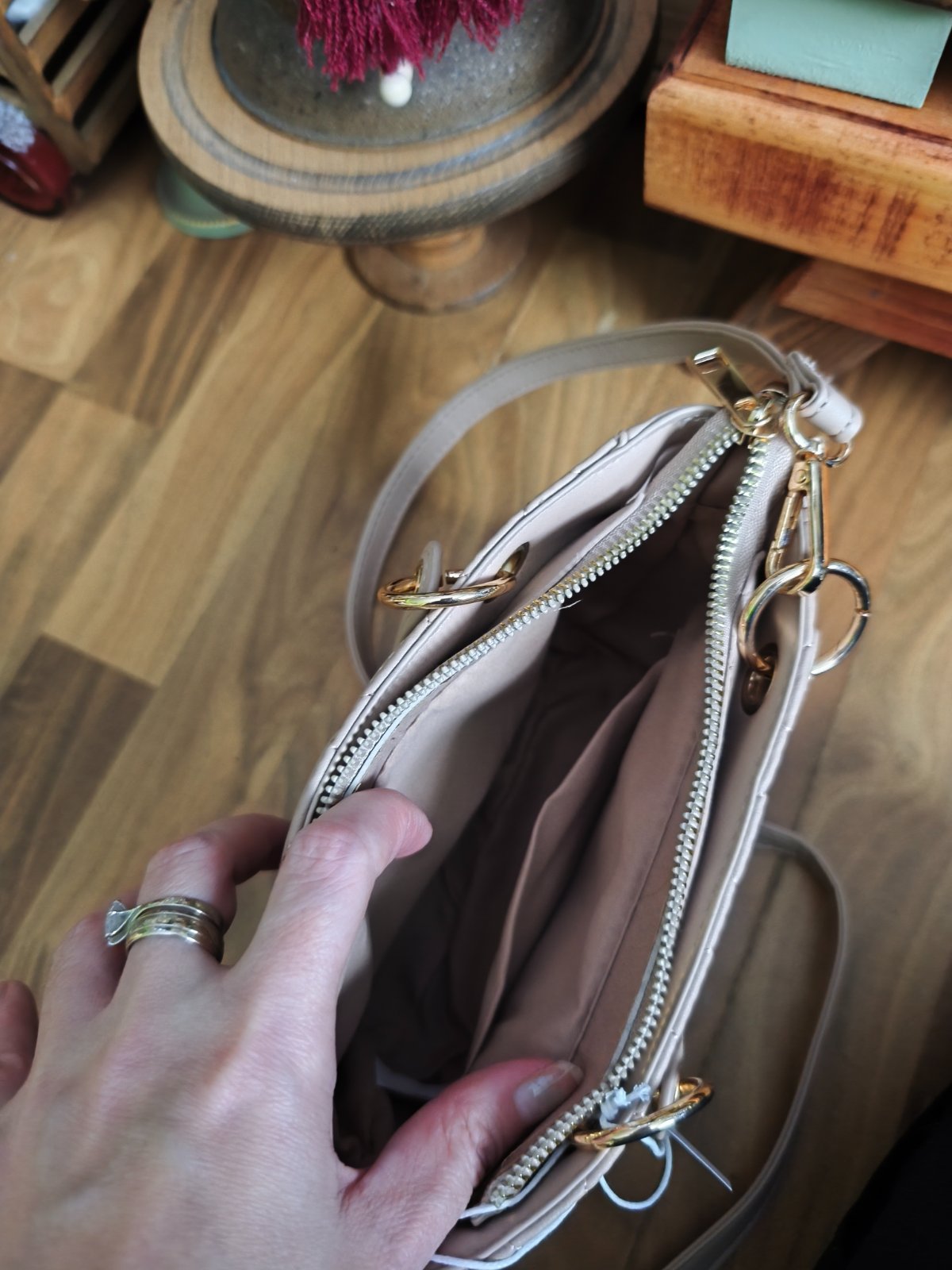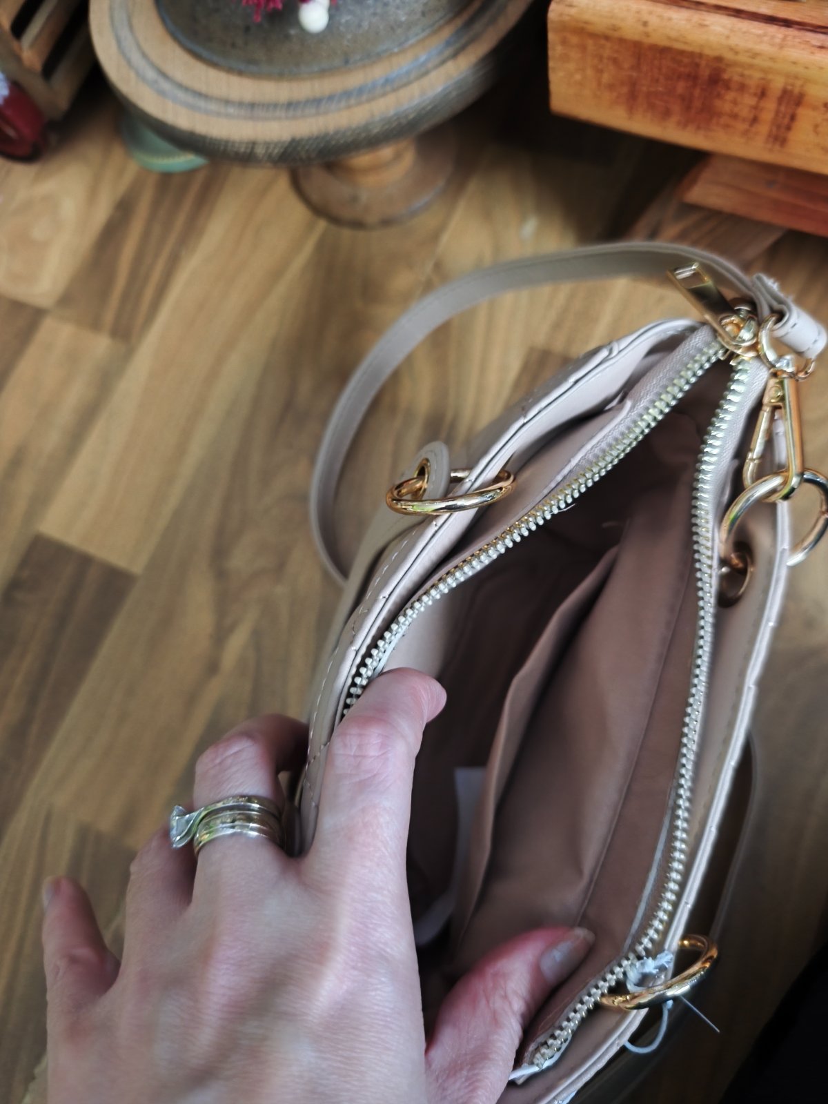 Dámska malá štýlová kabelka, do ruky i na rameno, rozmery viď na foto, farba je slabo púdrovo ružová.
