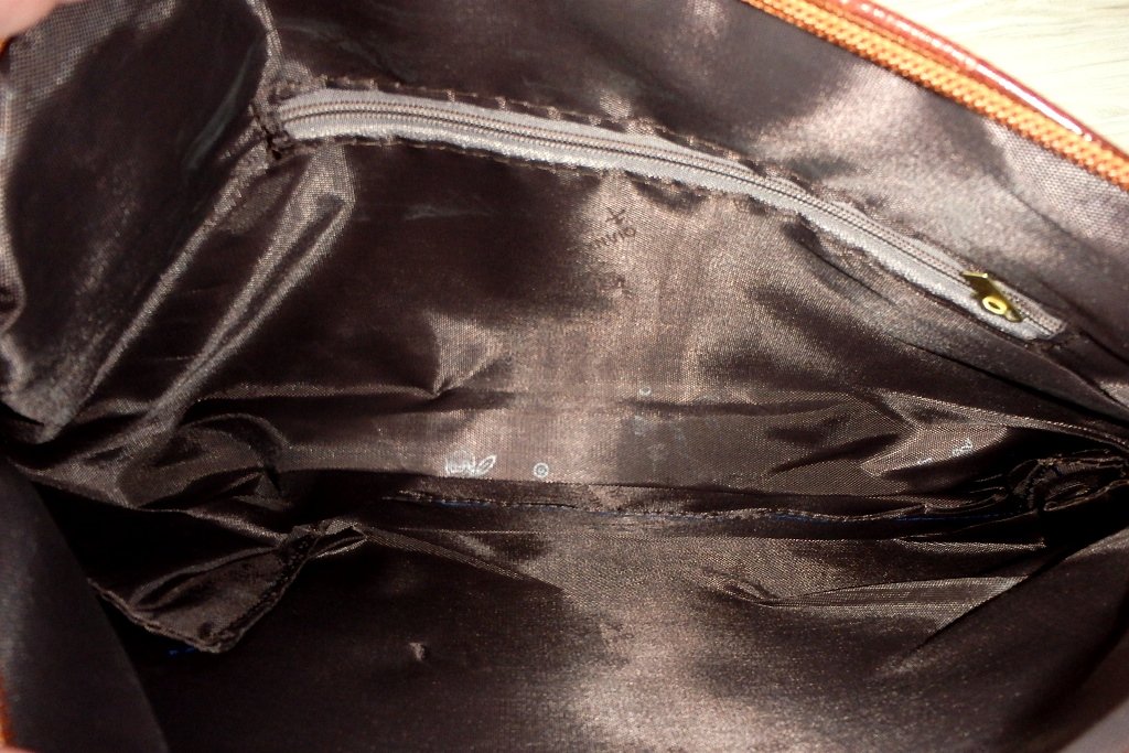 Vo vnútri je jedna väčšia časť a z boku na jednej strane je vrecko na zips.