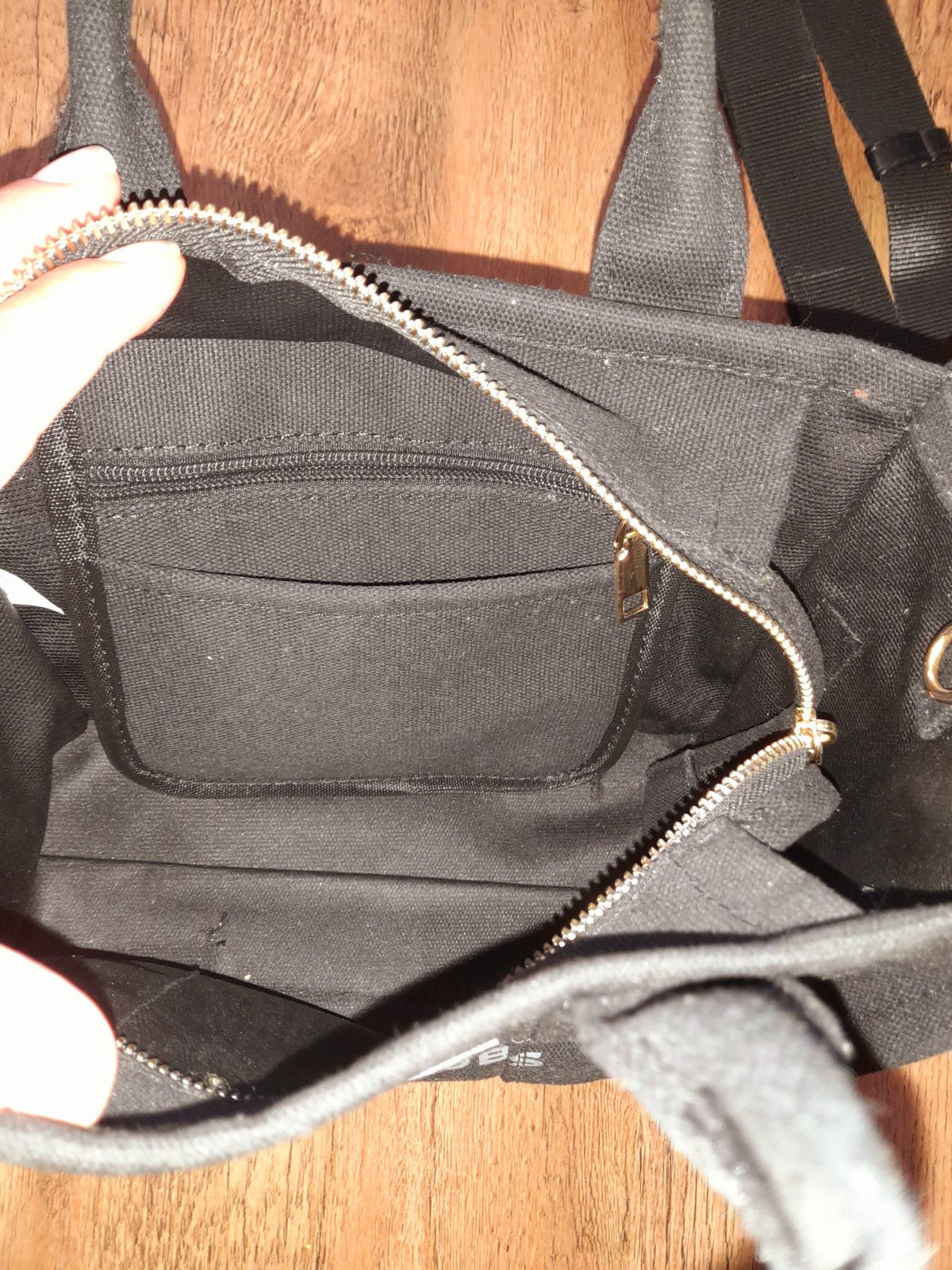 Predám peknú kabelku,nosena,v super stave. Materiál je taka hrubšia látka. Farba je sýta čierna,len fotky skresluju. Nieje originál.