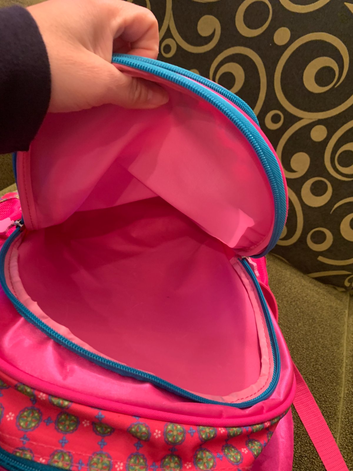 3 oddelenia na zips, bočné vrecká, na chrbte vystužený, dobrý stav bez poškodení.