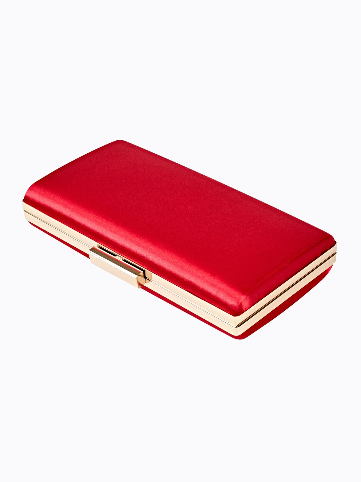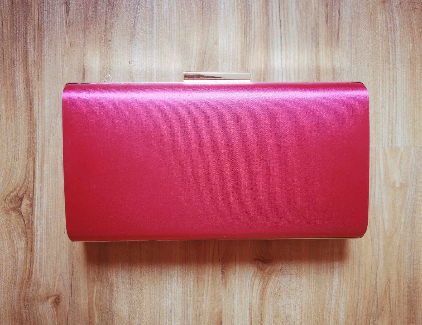 Nová clutch kabelka, v sýtej červenej farbe s jemne ružovým nádychom. Nová, nenosená, má aj odopínateľnú retiazku. Výška: 12cm, šírka: 21cm, hĺbka: 4cm.