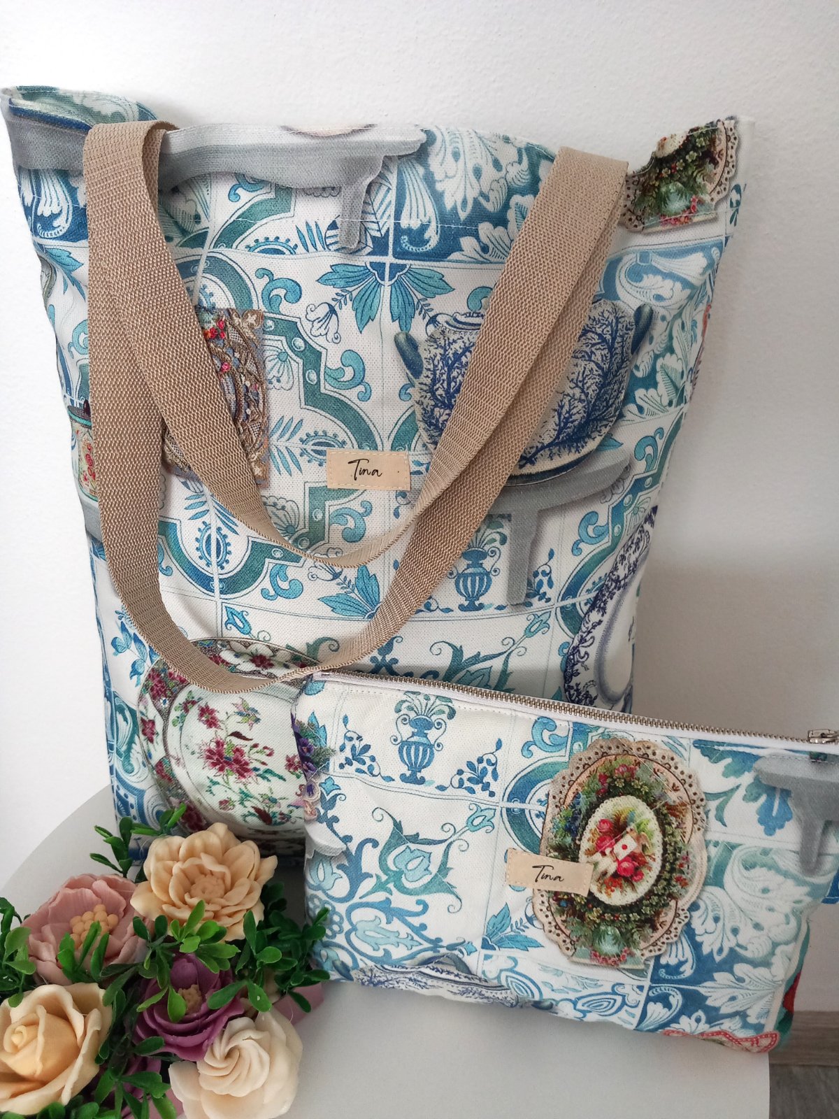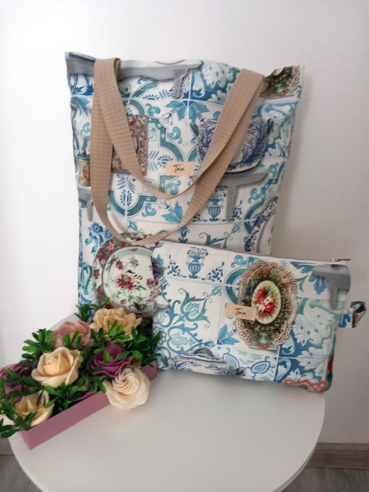 Dámska štýlová látková taška s nádherným vzorom pre úžasnú ženu ako si ty . Je ušitá z kvalitnej pevnejšej látky,podšitá bielou 100 % bavlnou ,je tam aj vnútormé vrecko .Taška je na rameno , k taške je aj kozmetická taštička na zips -tá je podšitá vatelínom a bielou bavlnou Rozmery tašky 49x37x9 cm ručky 60 cm Rozmer taštičky 24 x18 cm