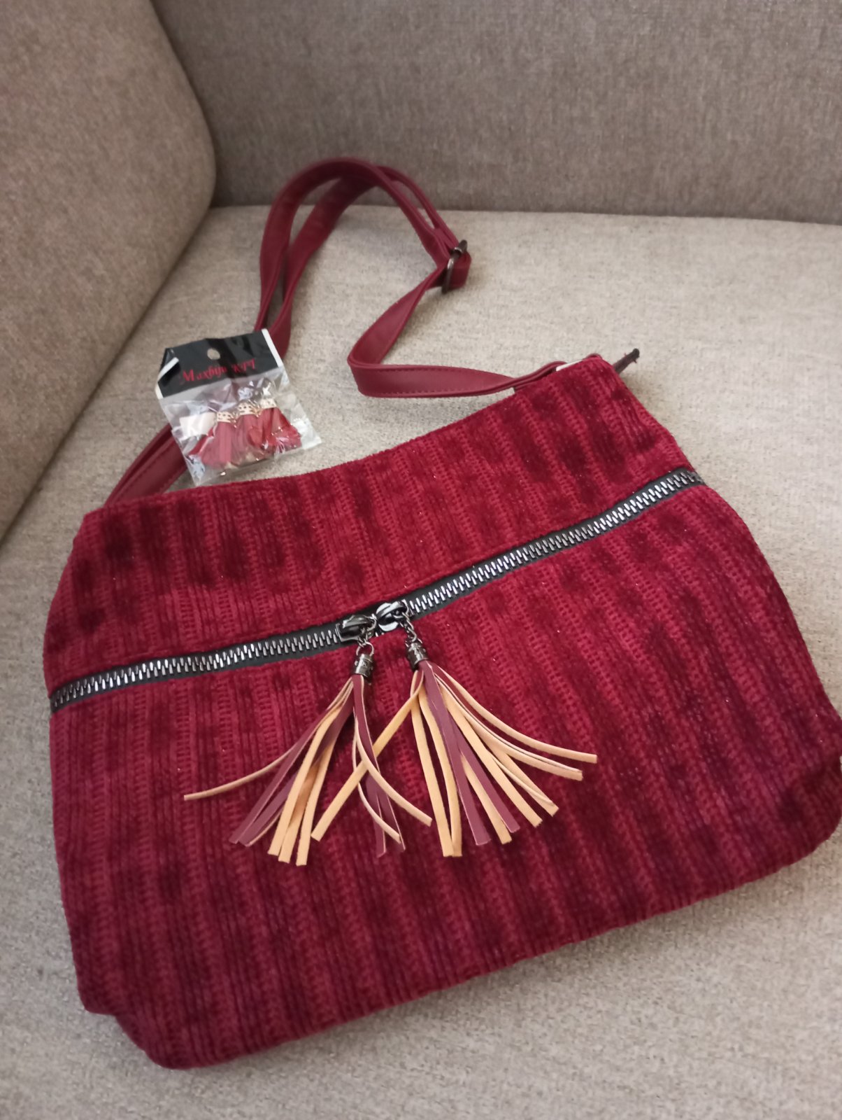 Predám zaujímavú kabelku aj s náhradnými strapcami...rozmer šírka 34cm a výška 27cm.
