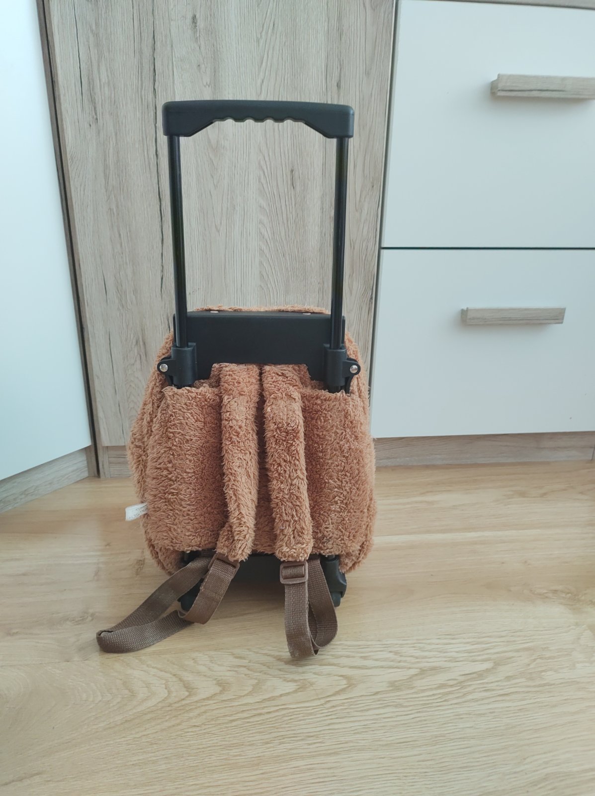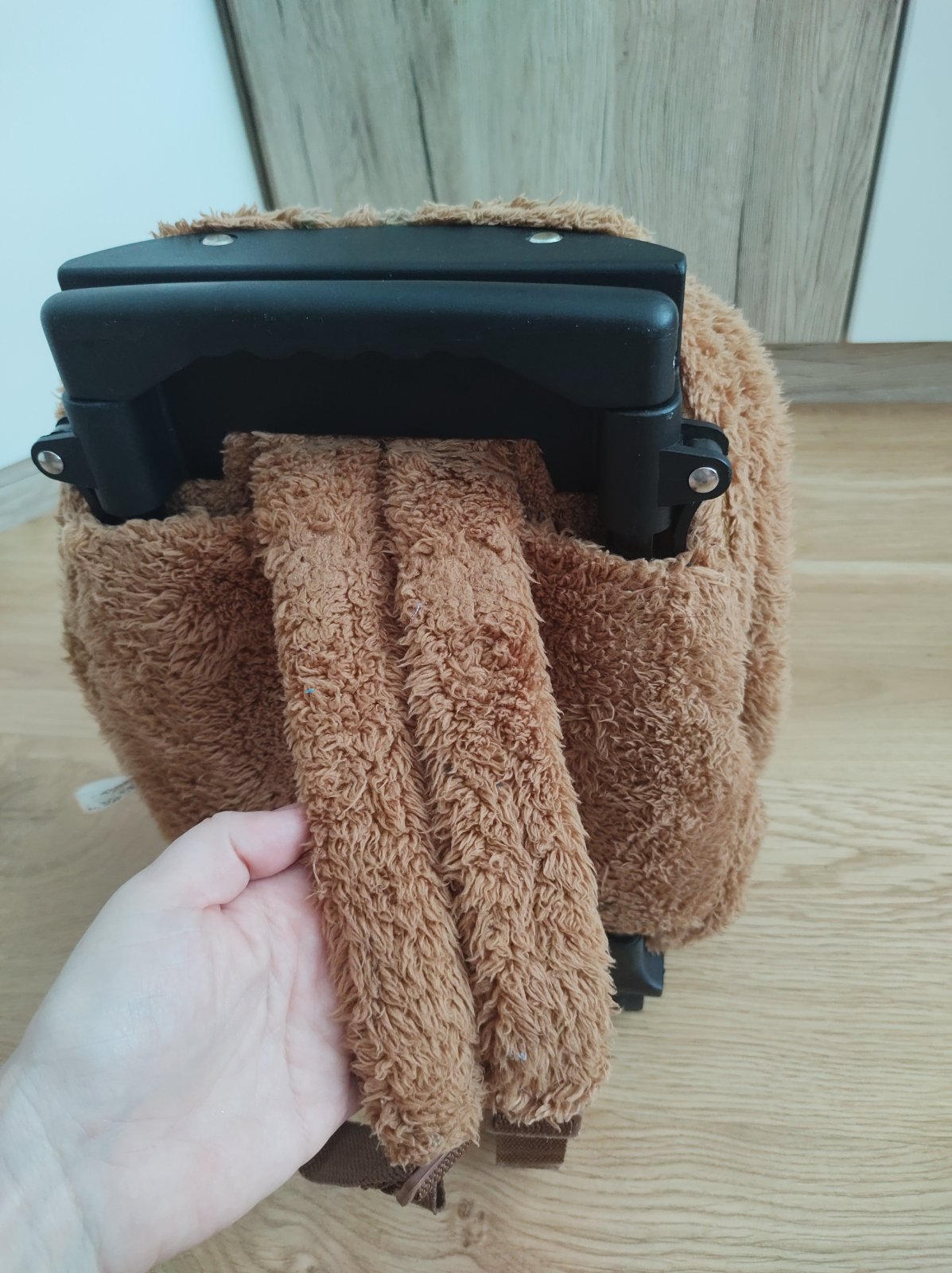 Párkrát použitý. Rozmery a nedostatky nafotené - vpredu dole, vnútri a na popruhoch fľak. Inak v peknom stave, kolieska pekne idú, suché zipsy držia.
