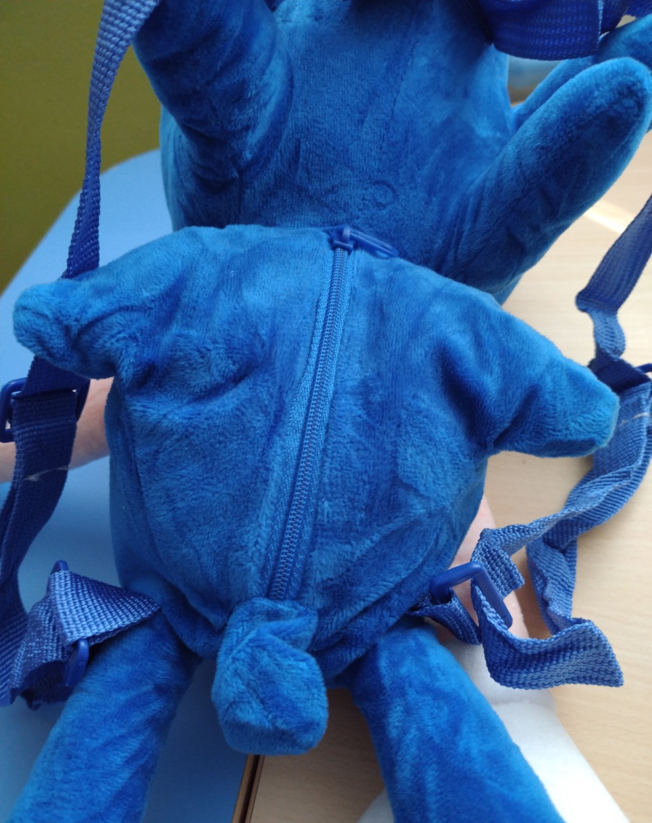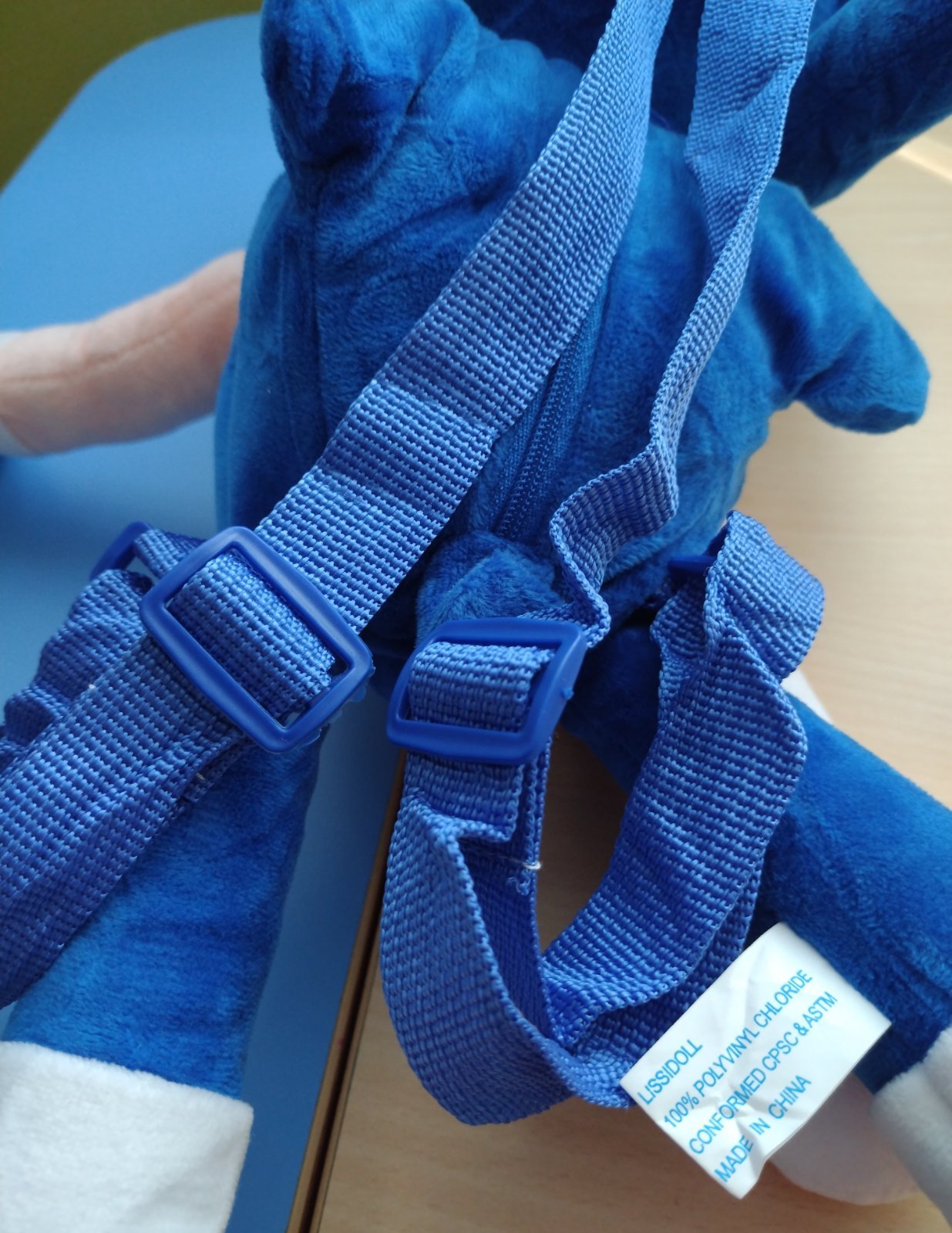 Ľahký plyšový batoh Sonic, regulovateľná dĺžka trakov podľa potreby majiteľa, úložné vrecko, nový, nenosený.