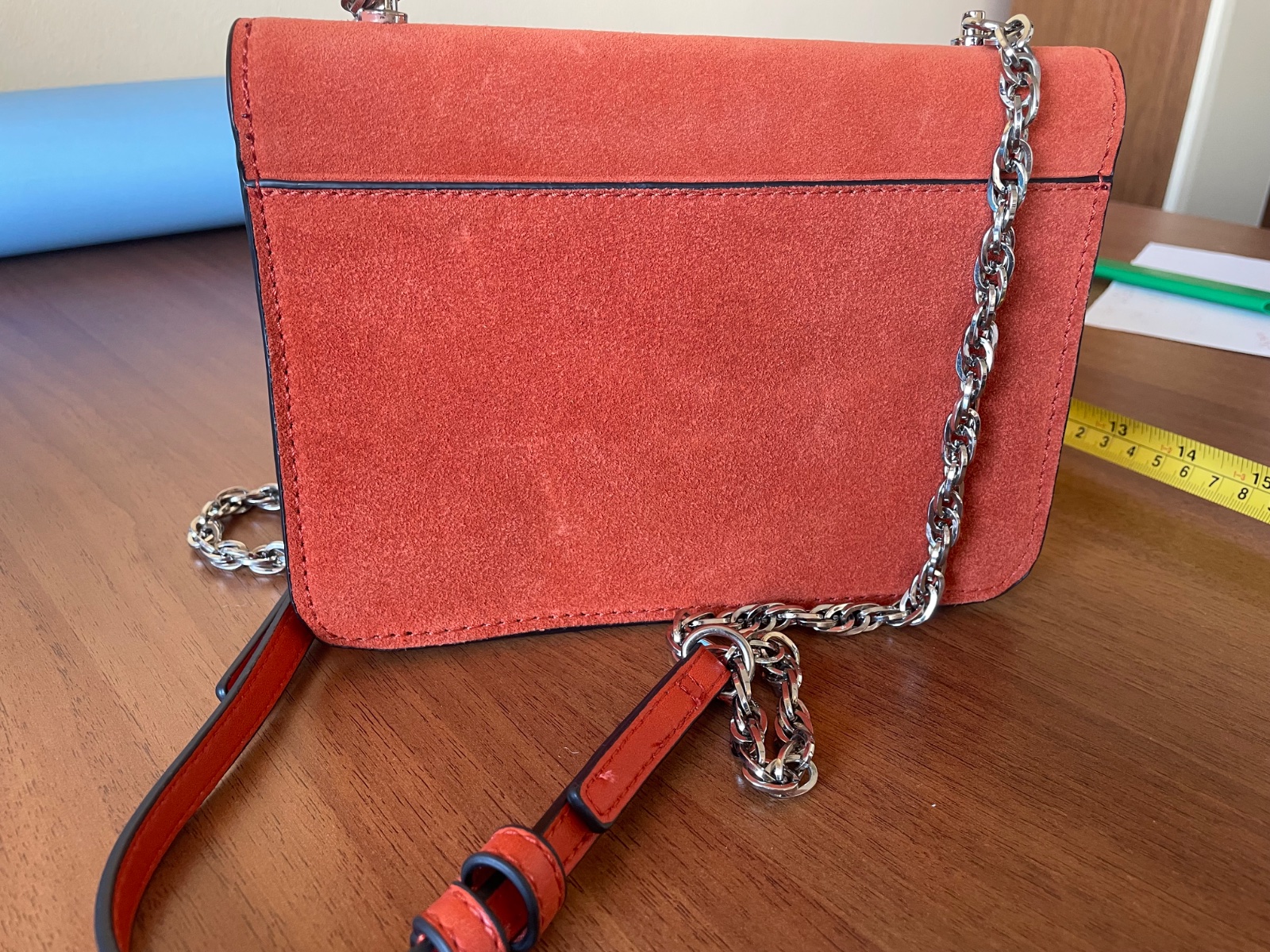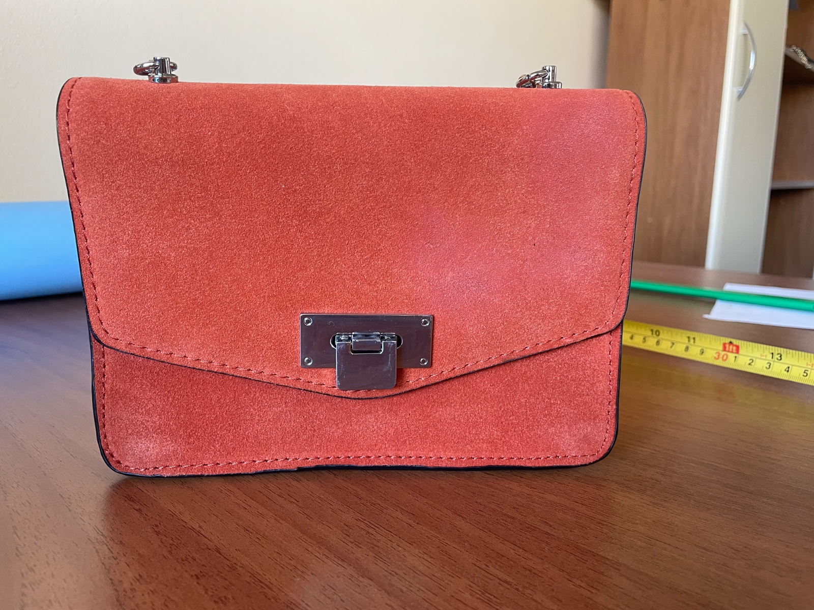 Predám raz použitú červenú semišovú kabelku značky mango so zlatou retiazkou. Bez poškodení, ako nová. Veľkosť 24x15 x5. Pôvodná cena 35€, predám za predám za 18€ plus pošta. Možná dohoda.