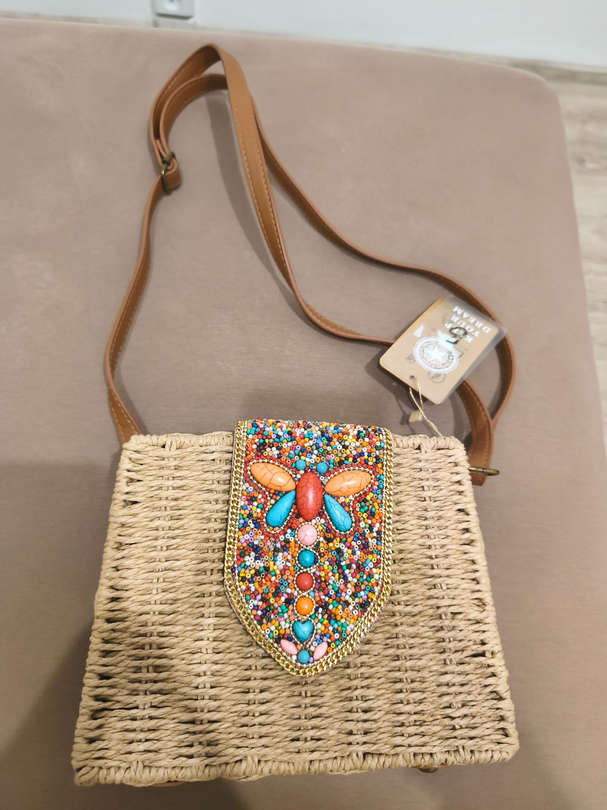 Predám krásnu slamený kabelku,raz použita.Top stav.Vo vnútri jedno vrecko na zips a dve menšie vrecká.