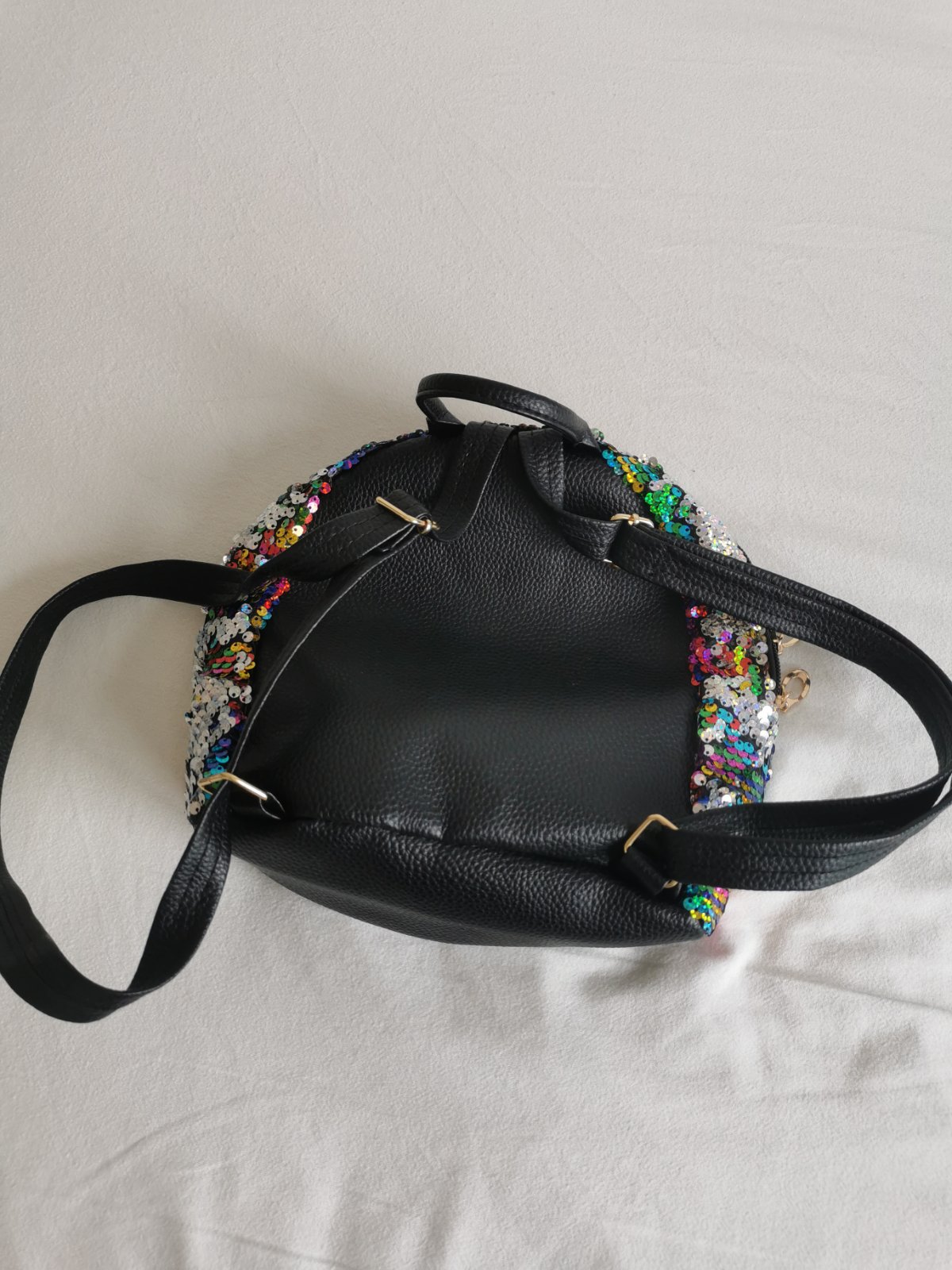 Detský flitrový ruksak vhodný na malé výlety, bez poškodenia, nikdy nenosený, bol to len nevhodný darček.