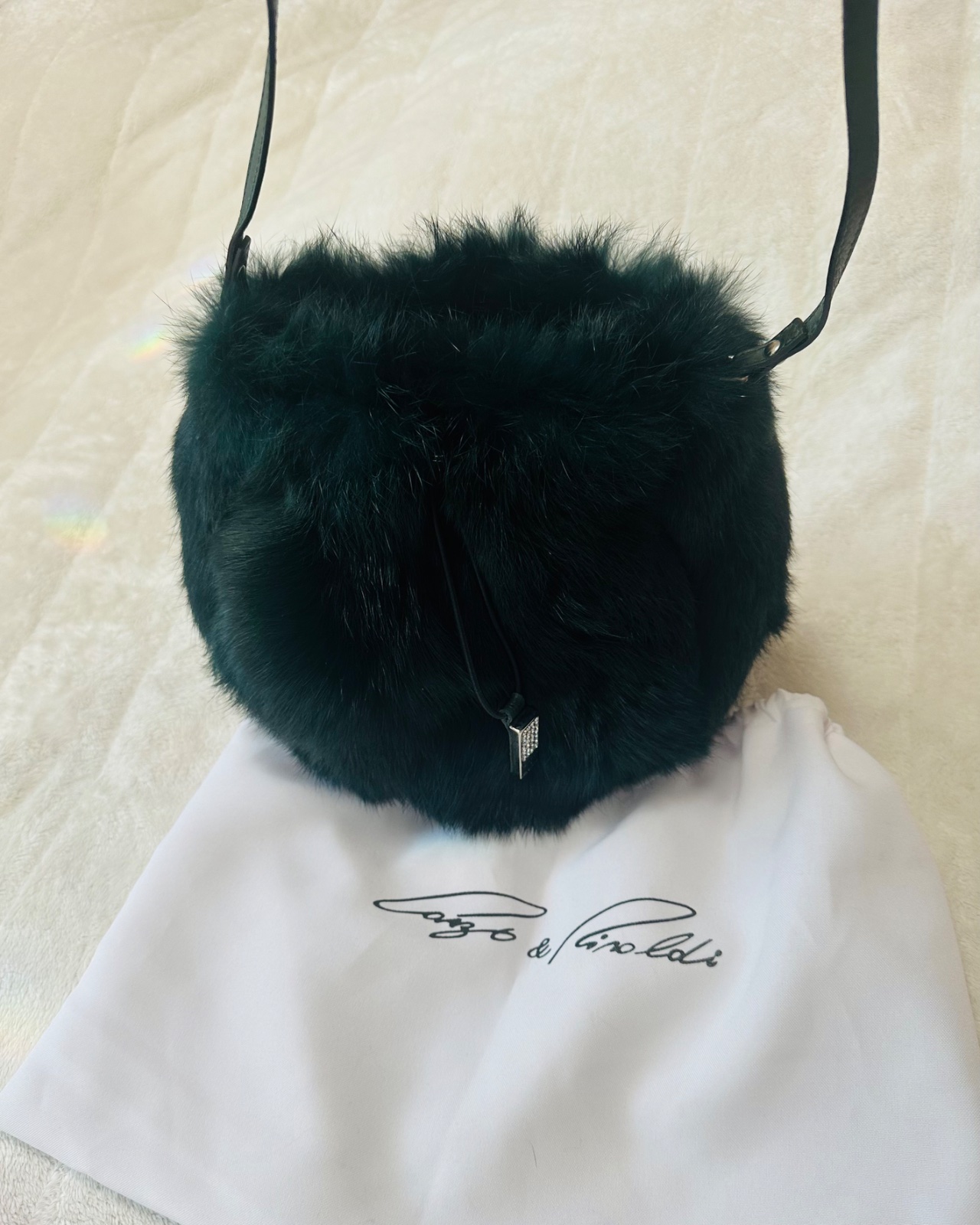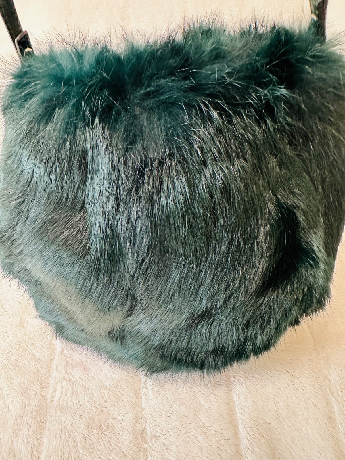 Tmavozelená kožušinová kabelka vak Cango&Rinaldi