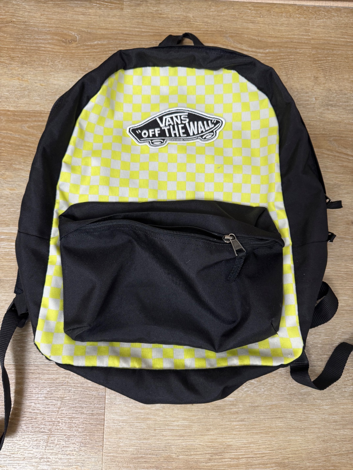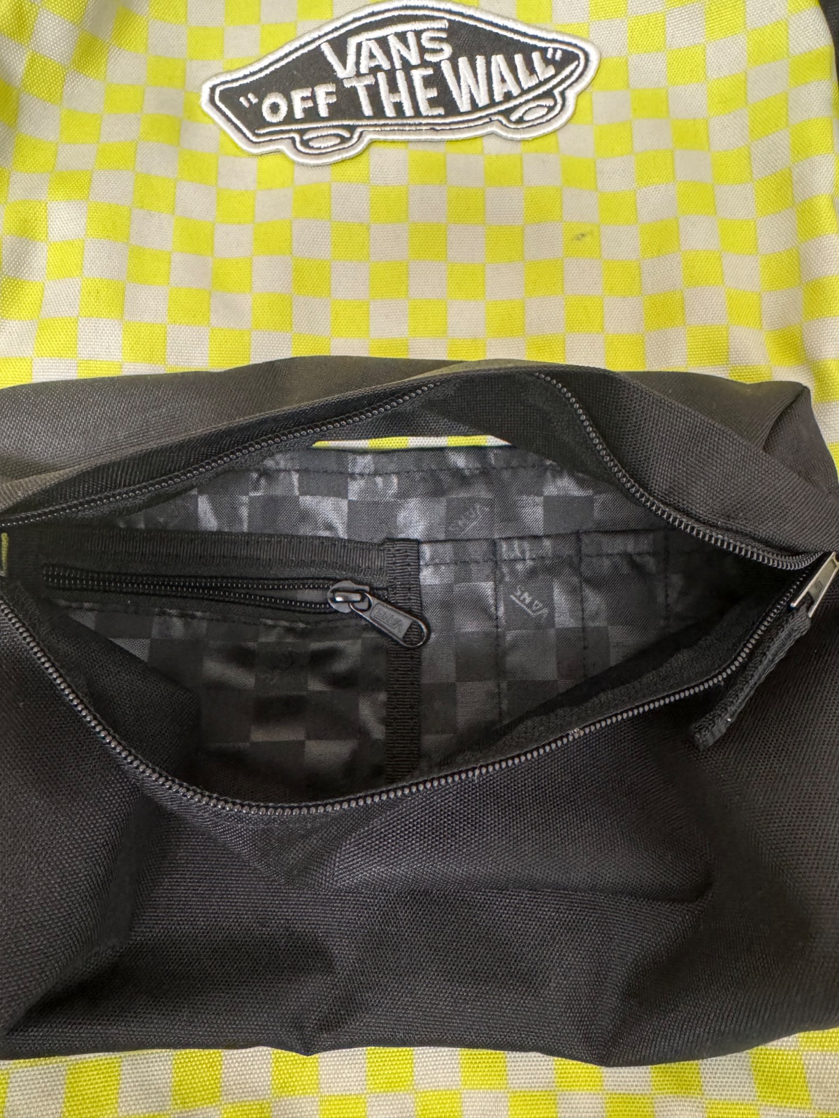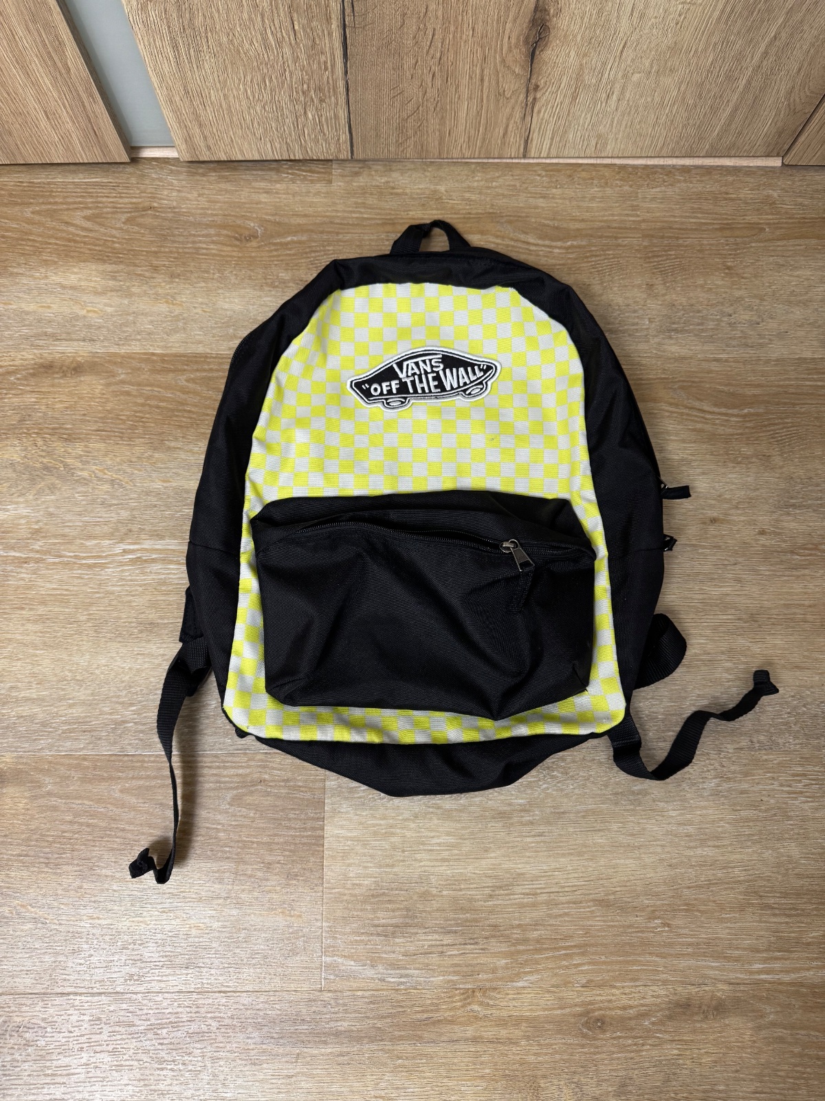 Ponúkam krásny batoh Vans v čiernej farbe v kombinácii so žlto-bielym károm. Je vo veľmi peknom stave, akurát má jemne poškrabanie a zvnútra trošku ušpinený. viď. detailné foto, ale nie je prederavený. Má jednu hlavnú komoru, menšie predné vrecko s priestormi na odkladanie drobností a priestor na notebook. Má nastaviteľné ramenné popruhy a pútko vo vrchnej časti. Je vhodný na bežné nosenie. Poštovné podľa taríf.