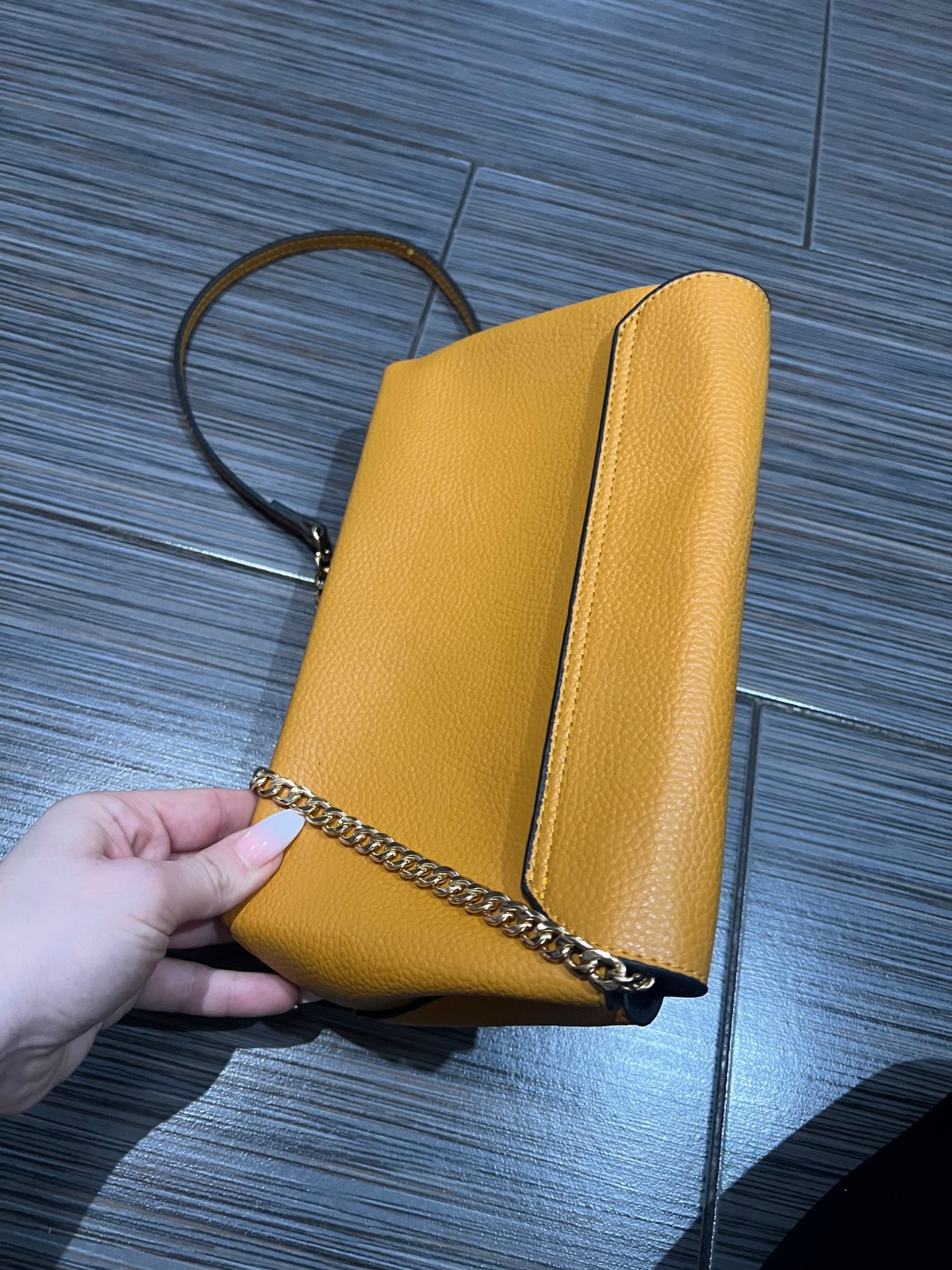Saffiano koža velmi pekna farba . velkost je idealna vela sa zmesti. Par x nosena vyzera ako ked som ju kupila Ja som ju kupovala za 250e v Pandorfe.