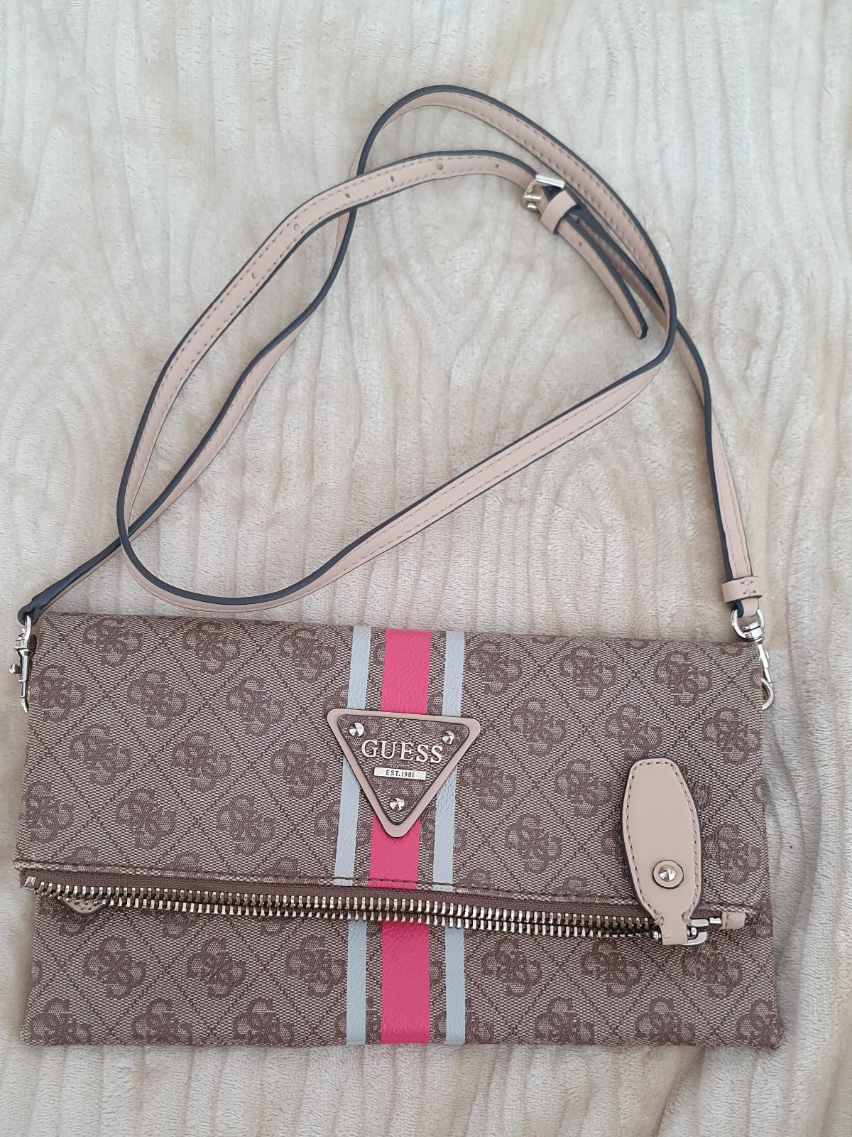 Predám kabelku vrátane dust bagu. Značka Guess. Vzatá párx. Super stav. Má na sebe asi 3 nedokonalosti. Pri bežnom nosení nevidieť. Dlhý popruh nepoužívaný. Detailne nafotená a premeraná. Osobný od...