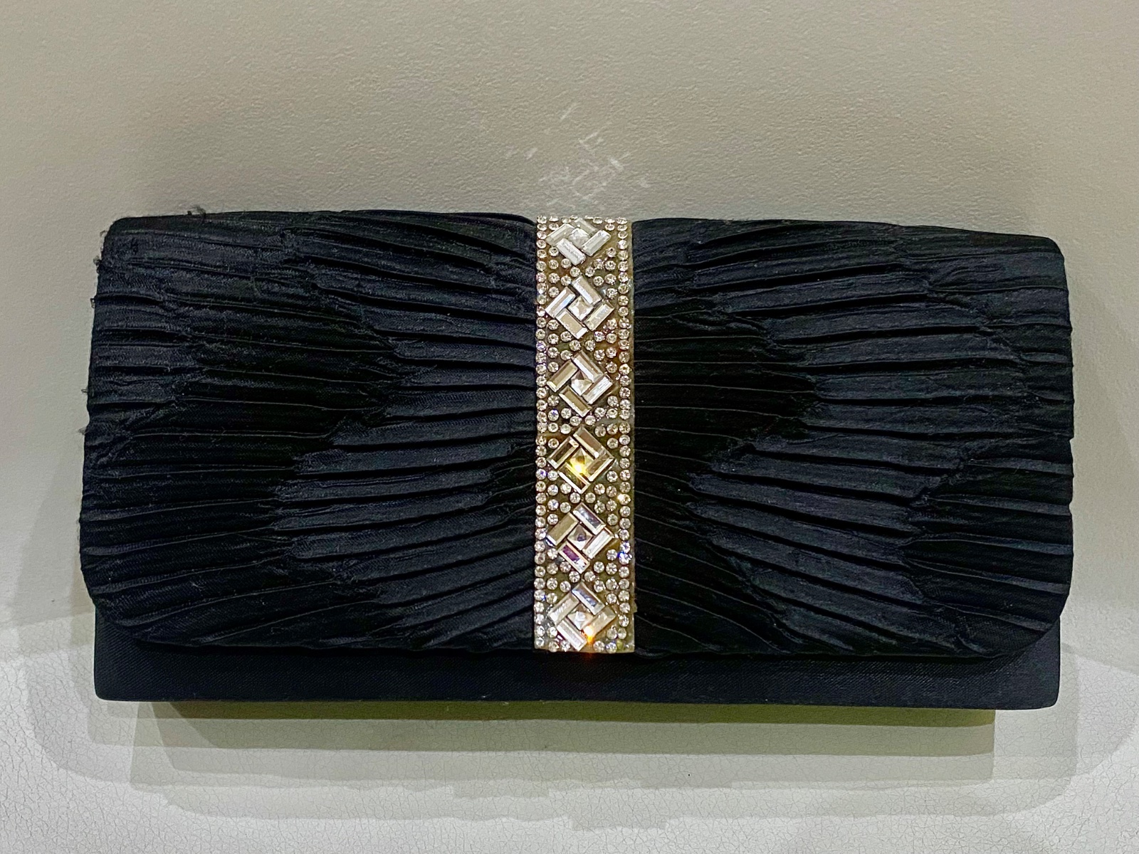 Dámska kabelka do ruky čiernej farby s kamienkovou ozdobou
