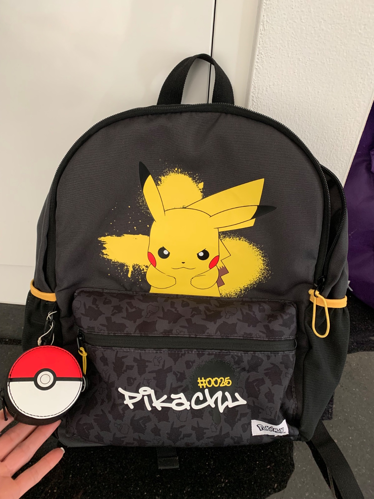 Ruksak PIKACHU POKÉMON s detailom prívesku s peňaženkou. Hlavná priehradka so zapínaním na zips. Má predné vrecko so zapínaním na zips. Má dve bočné vrecká bez zapínania. Rúčka a dvojitý nastaviteľný ramenný popruh.