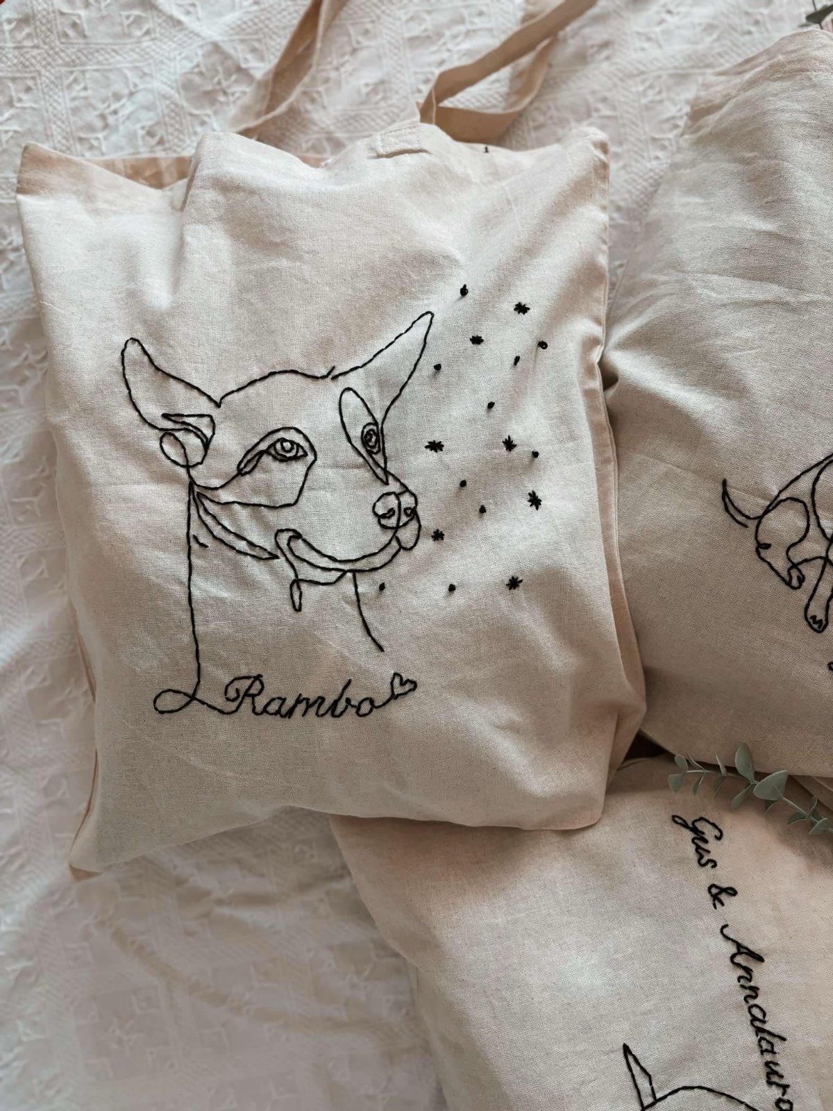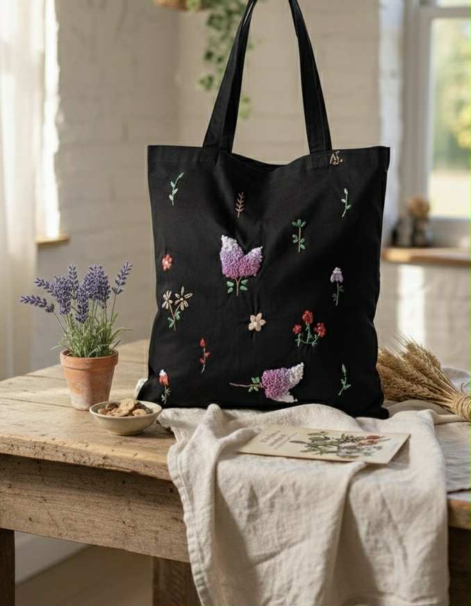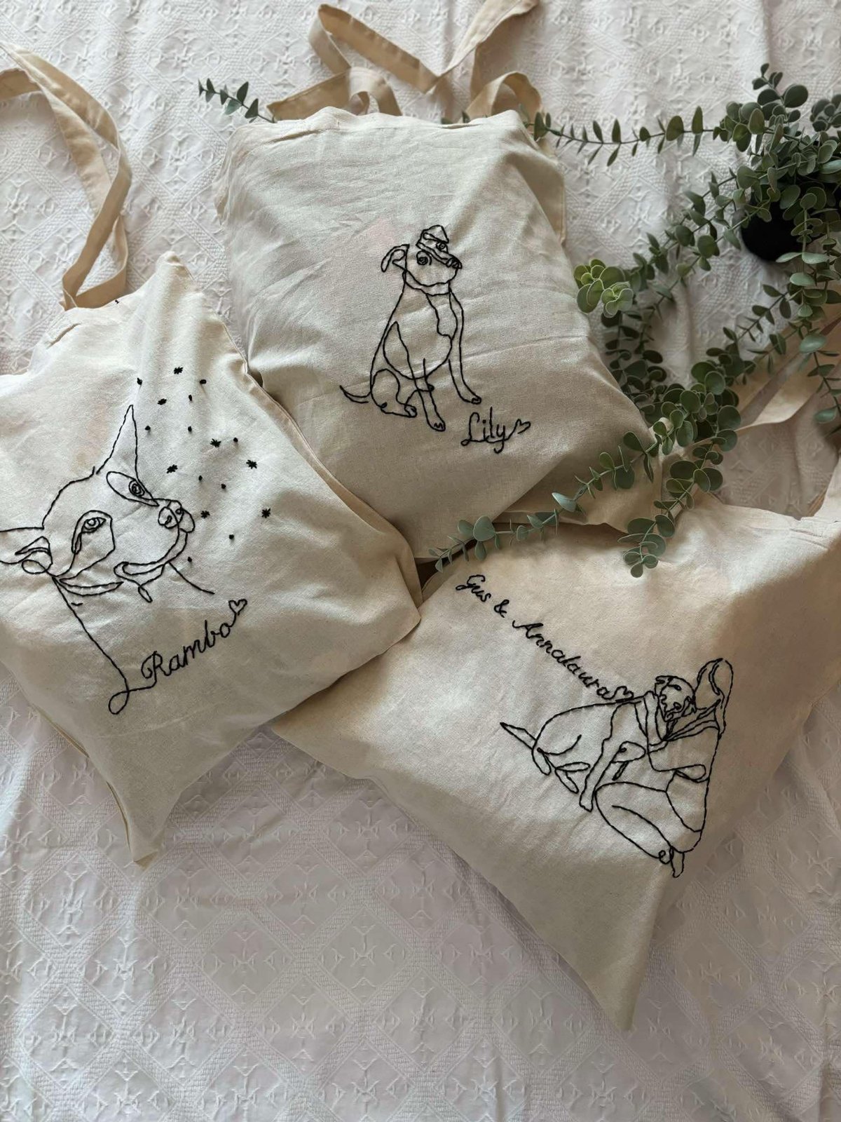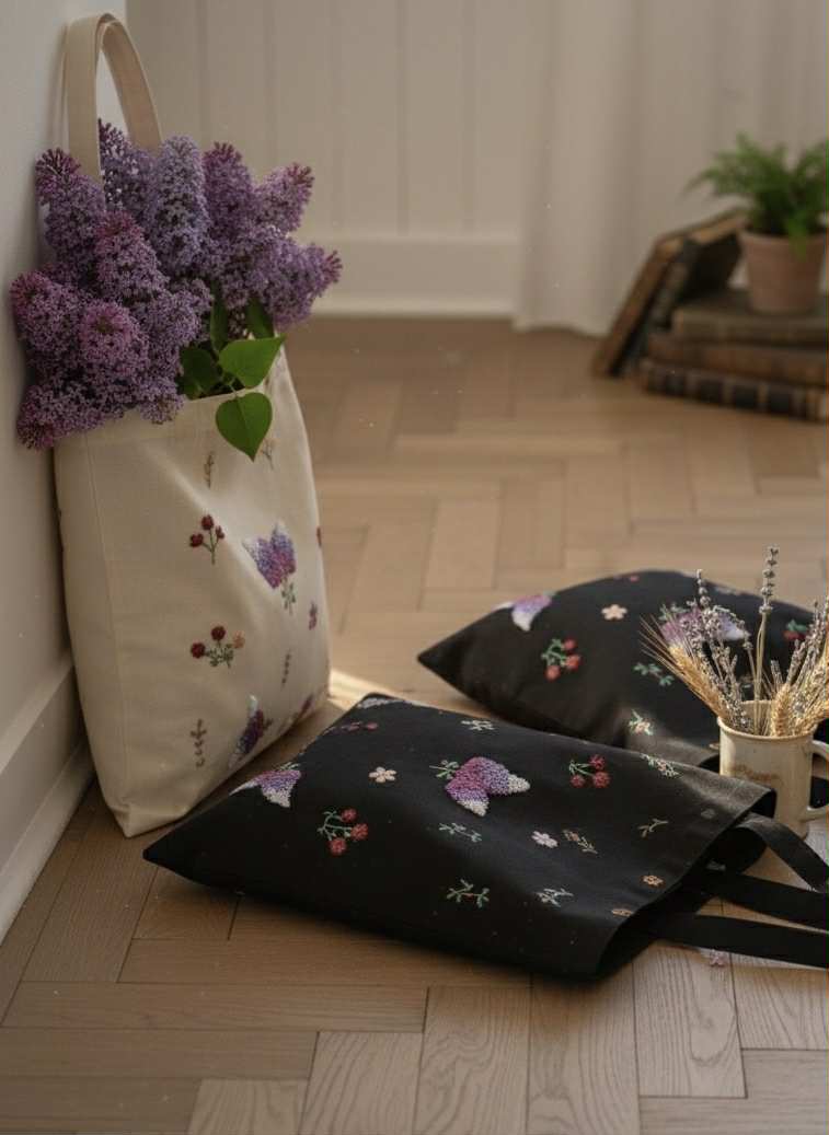 Plátené, ručne vyšívané tašky