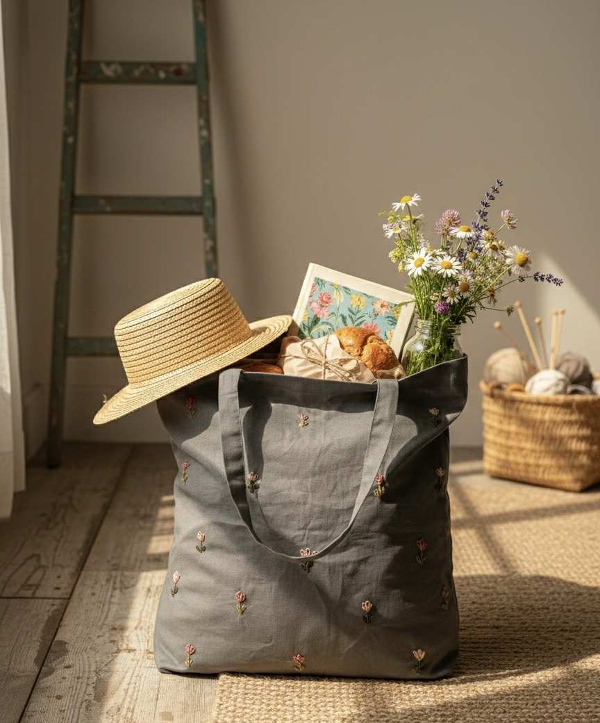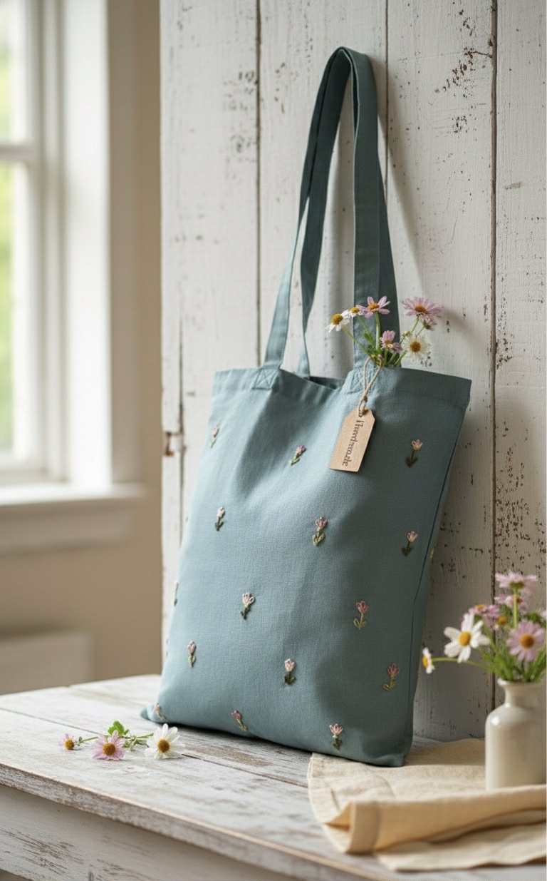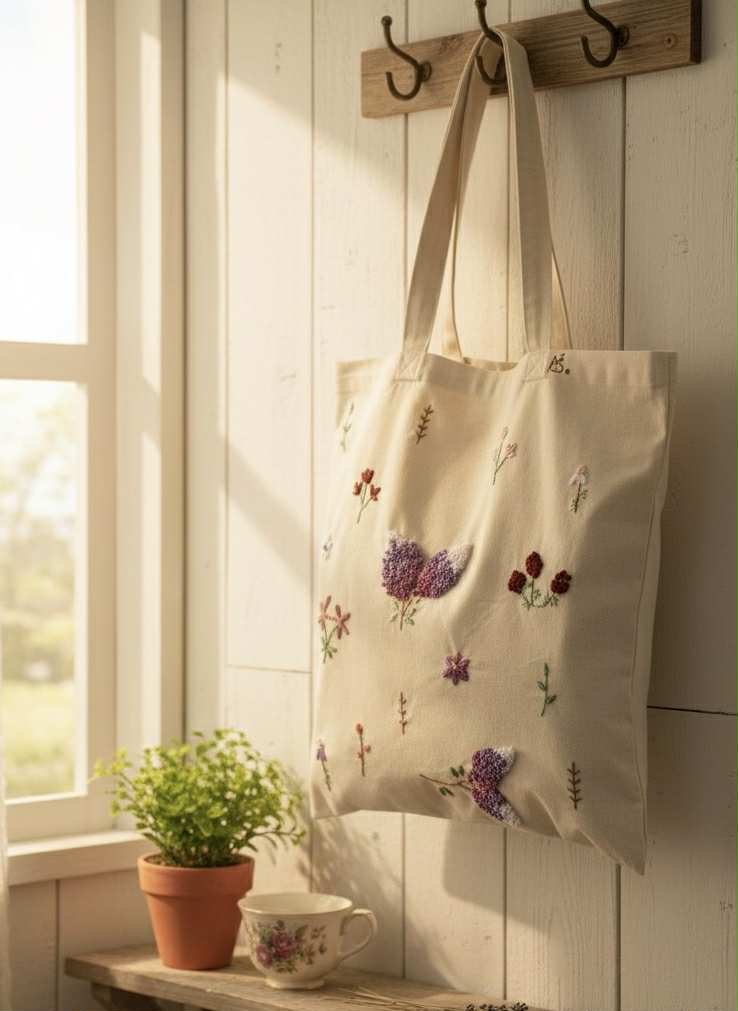 Plátené, ručne vyšívané tašky