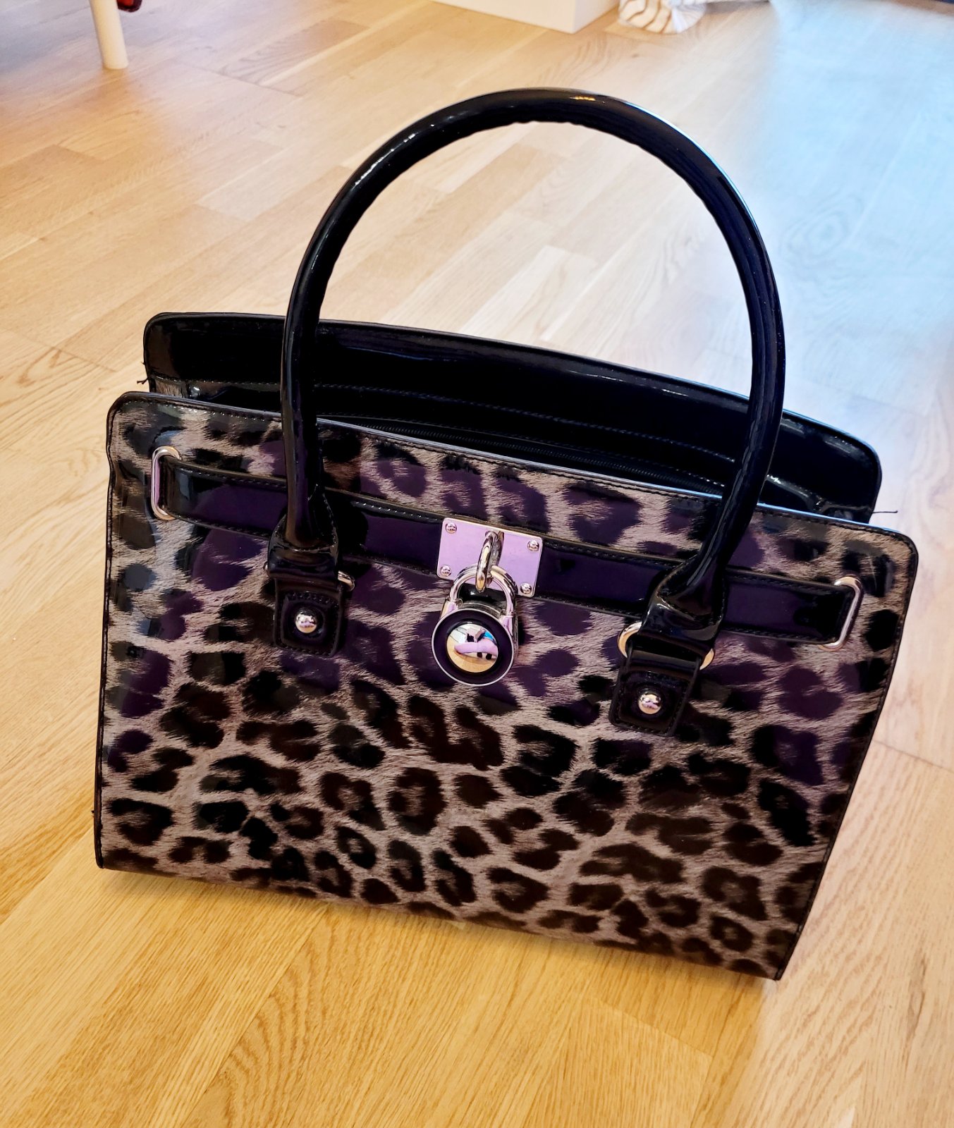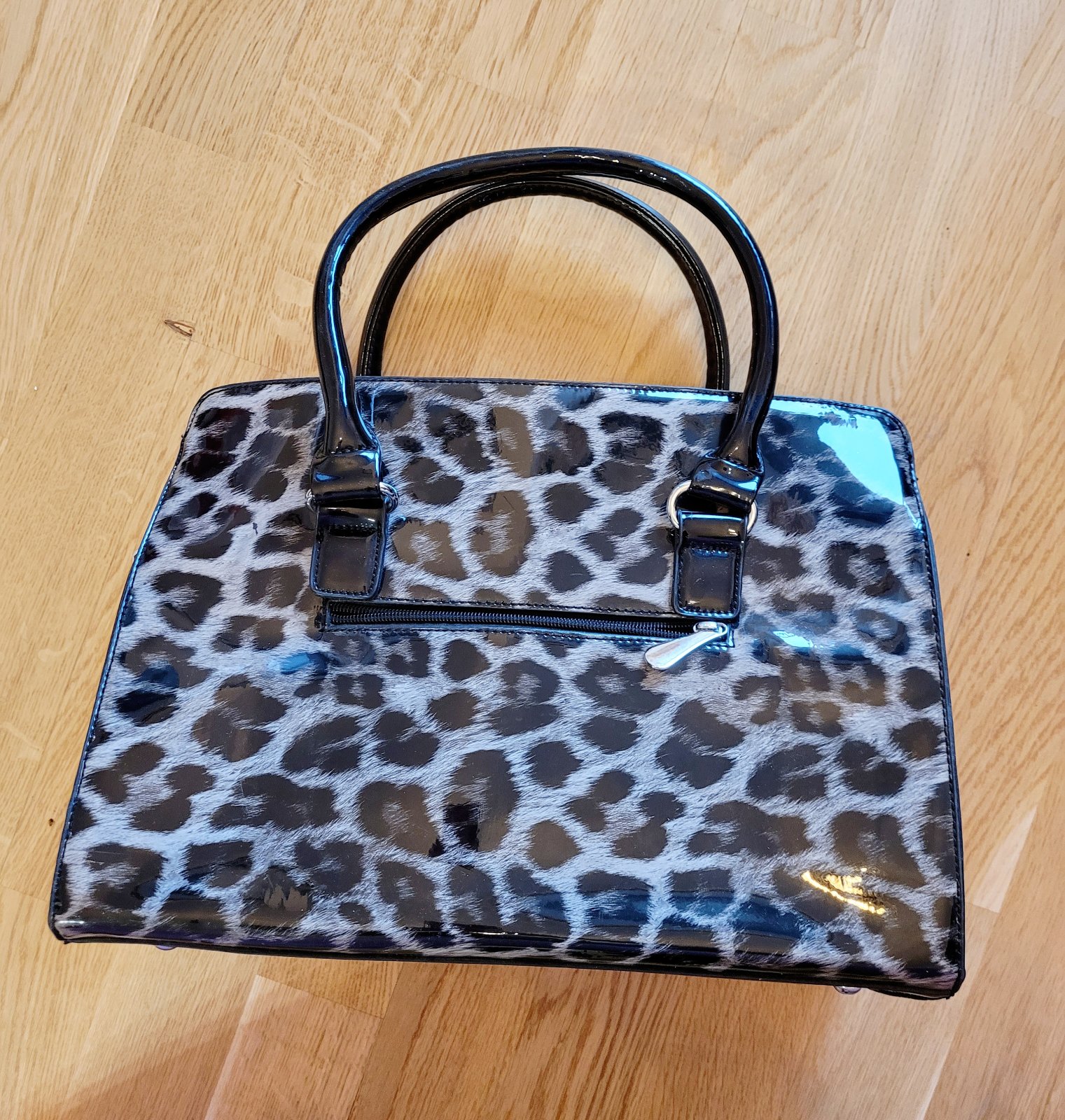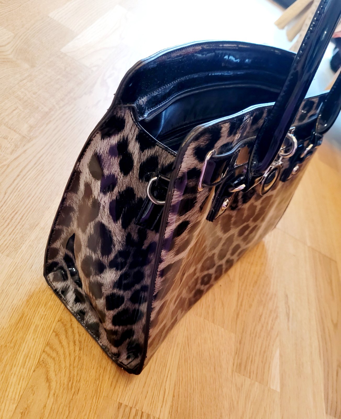 Sivo cierna väčšia tigrovana kabelka. Rozmery 36 x 26 cm.