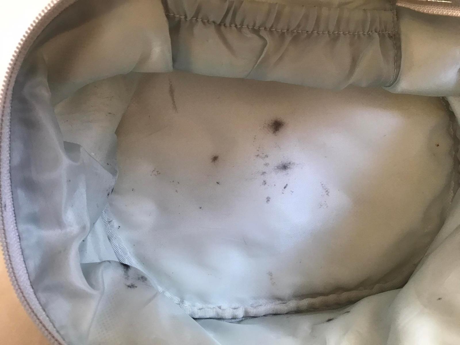 saténová taštička,zachovalá,vo vnútri sfarbená od špirály, dá sa pekne oprať v práčke