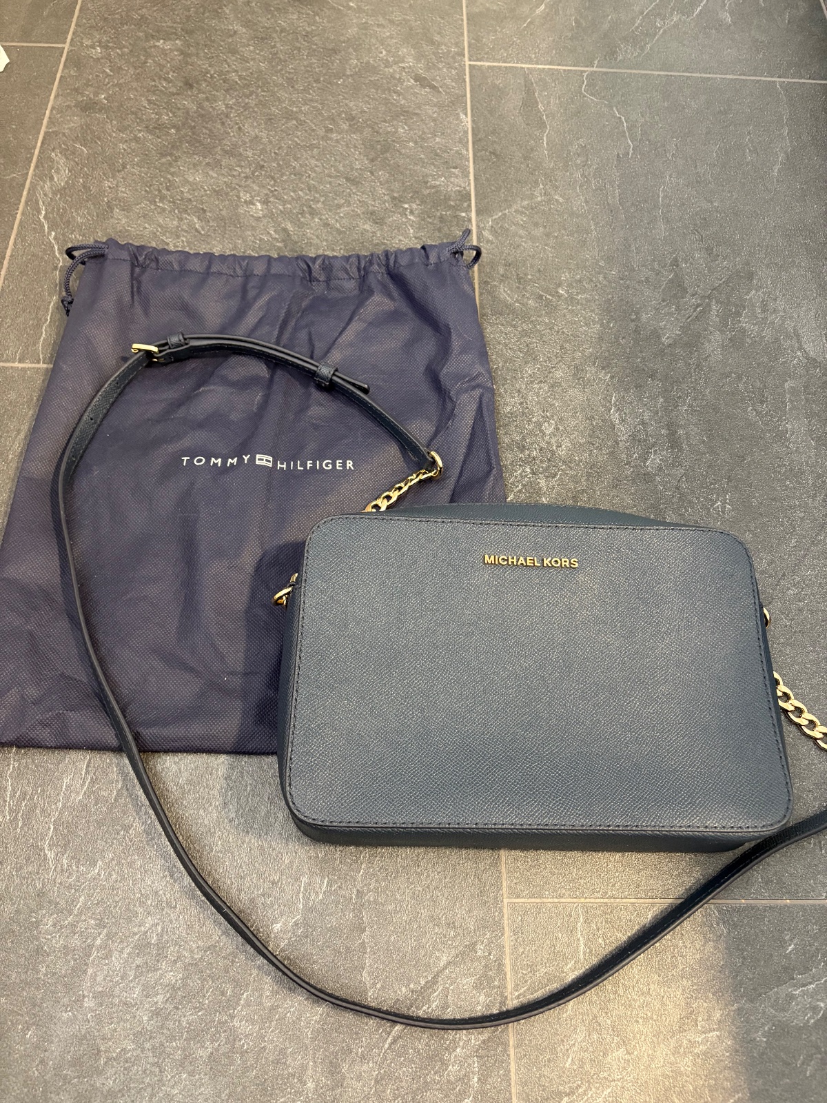 Predám koženú kabelku. Značka Michael Kors. Objednaná na Zalande. Farba modrá. Vzatá 2x. Na jednej strane je otlačená, asi zo skladovania, v skutočnosti to nevidieť, tak veľmi ako na fotke. Pridám dust bag Tommy Hilfiger. Osobný odber Zvolen, poštou, packetou alebo DPD.