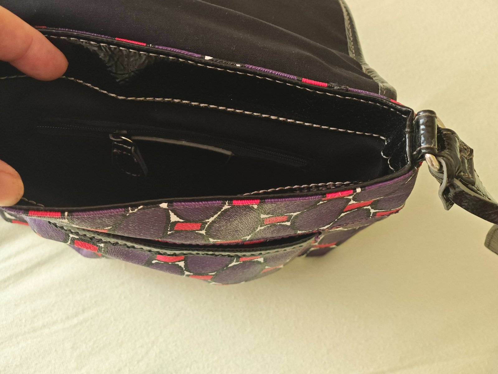 Elegantná fialová kabelka Nine&CO, kvalitný jemný materiál, vrecko vpredu, malé vrecko na zips v hlavnej časti a vrecko vzadu, zapínanie na magnet, veľkosť 20x22x7 cm, super stav, ako nová, pôvodná cena 39 eur. Vhodná pre dámy aj väčšie slečny. Pozri ďalšie ponuky, viac kusov zľava 5-25%. Po zaplatení ceny a poštovného na účet posielam aj poštou.