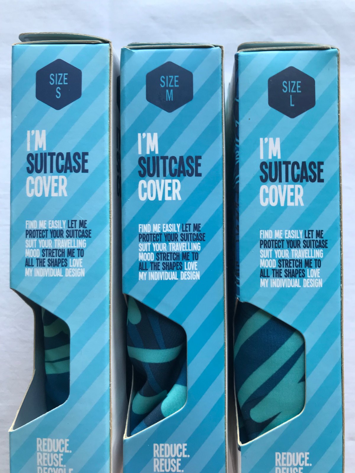 Elastický ochranný návlek na kufor, zn. BG Berlin. Slúži na ochranu/rozpoznanie kufra. Zapínanie naspodu na cvoky. Obe strany majú rovnaký dizajn. Na 3 veľkosti kufra: "S" (44-52cm), "M" (57-62 cm), "L" (67-73cm). Nové, nepoužívané, v pôvodnom balení. K návleku zdarma visačka na kufor. Mám všetky 3 veľkosti. Cena podľa veľkosti: S-14,- eur; M-16,- eur; L-18,- eur - všetky spolu za 40,- eur.