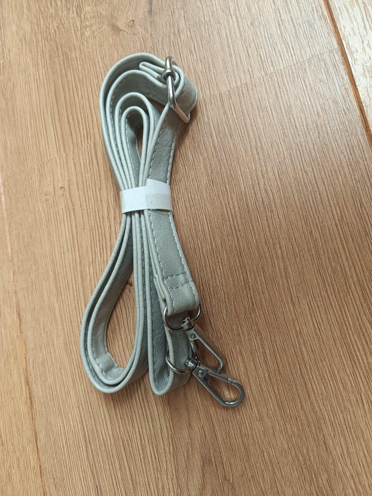 Nepouzite ramienko na kabelku, ma moznost nastavenia dlzky, je v sivej farbe, kozeny.