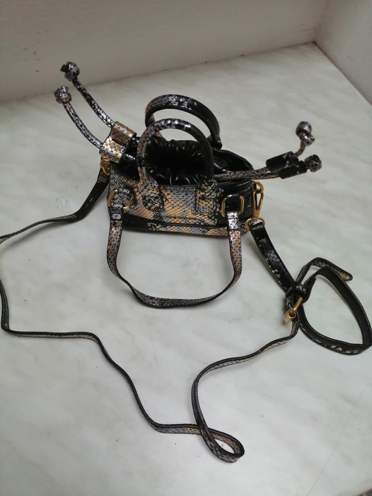 Dámska/dievcenska luxusna cierno, strieborno zlata kabelka, je to mini módny doplnok, šírka 18 cm, výška bez trakov 8 cm, hĺbka 6 cm, nepouzita