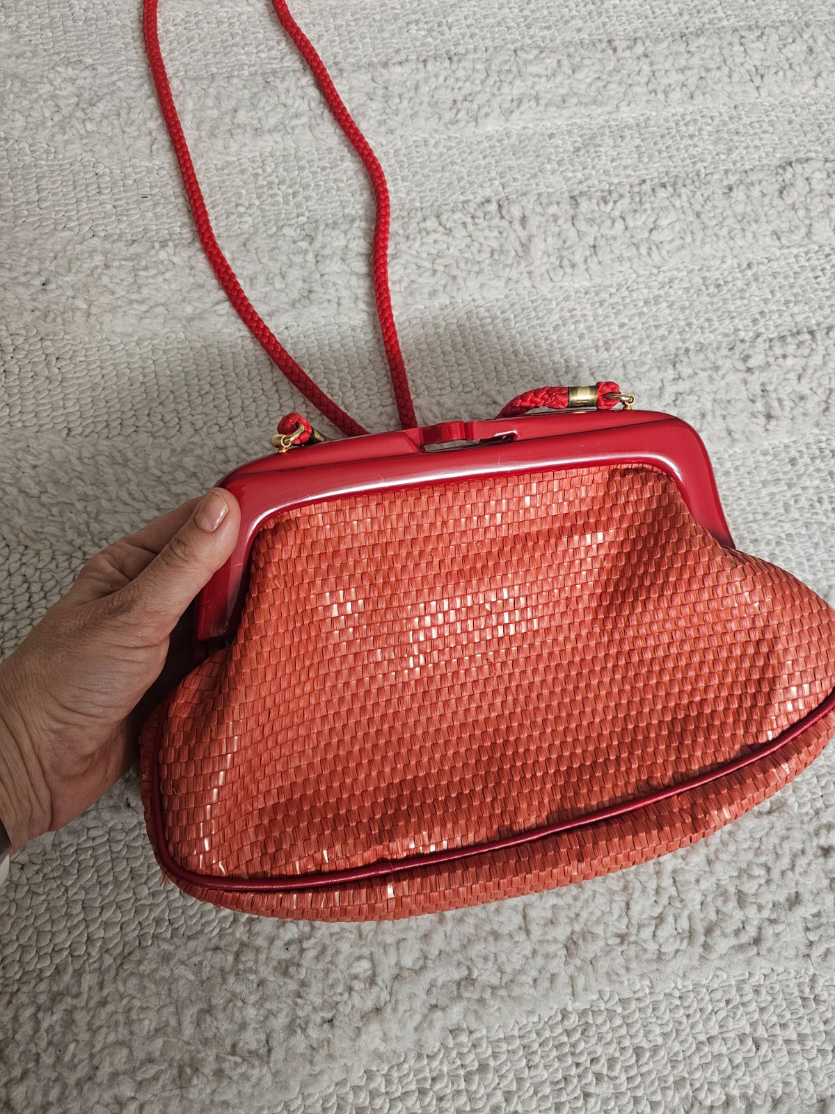 Original vintage kabelka crossbody zo syntetickej pleteniny. Neviem presne ako sa ten materiál nazýva.