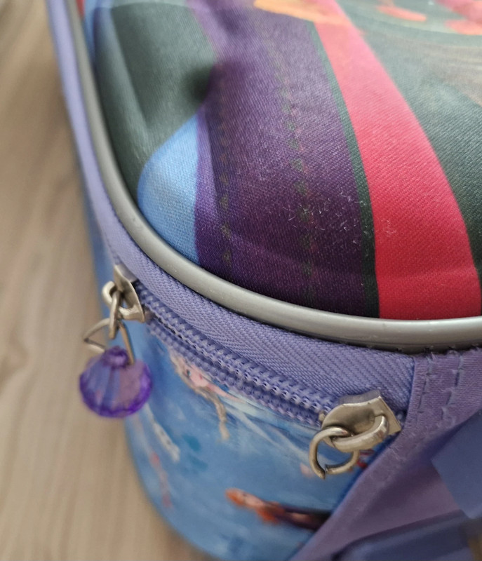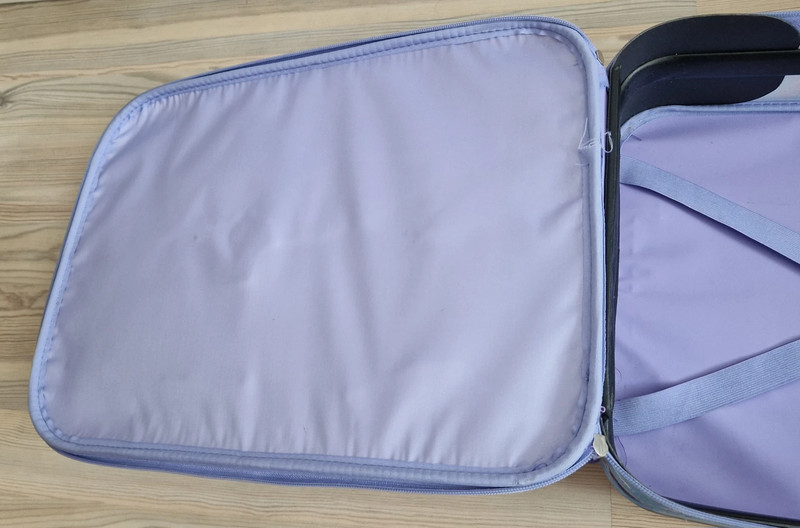 Používaný, veľmi dobre funkčný. Nedostatky: jedna strana zipsu je nefunkčná, takže je možné celý kufor zapínať iba z jednej strany. Viď foto. Má dve kolieska, priestorový reliéfny zvršok, vysúvací držiak, vnútorné zapínacie popruhy. Rozmery: výška vrátane max. vysunutej rúčky 82cm, kufor: kufor výška 53cm, šírka 32cm, hĺbka 16cm. Materiál textil+plastové súčasti.