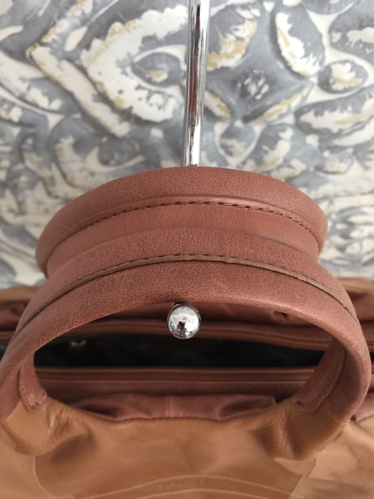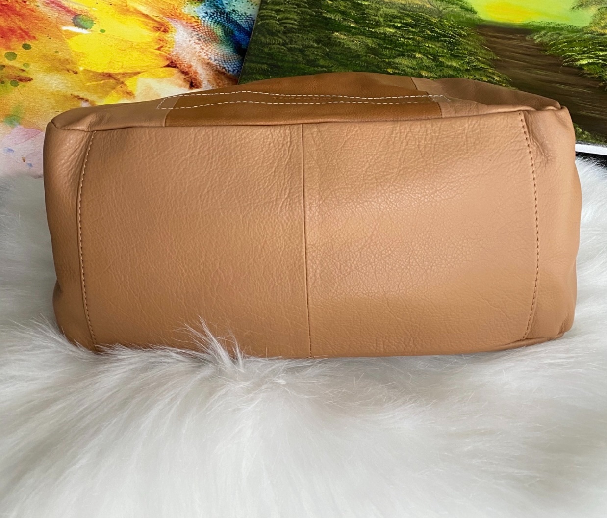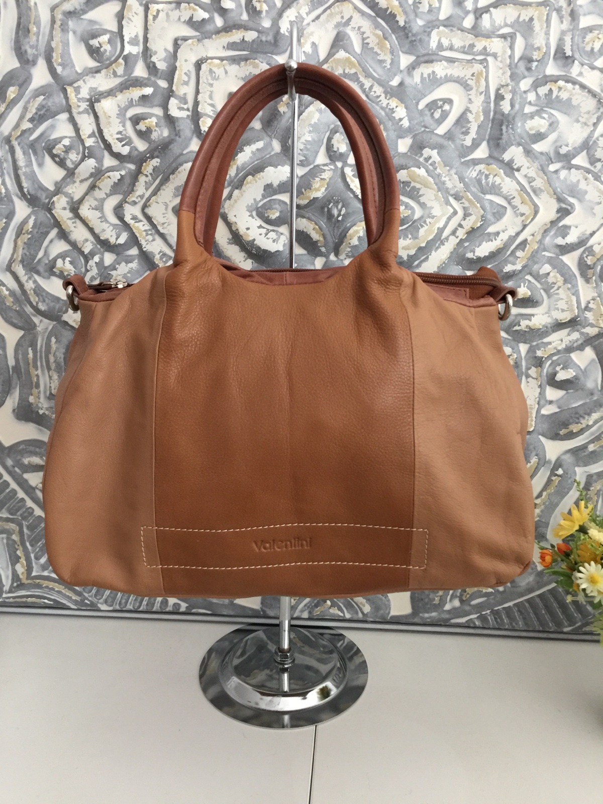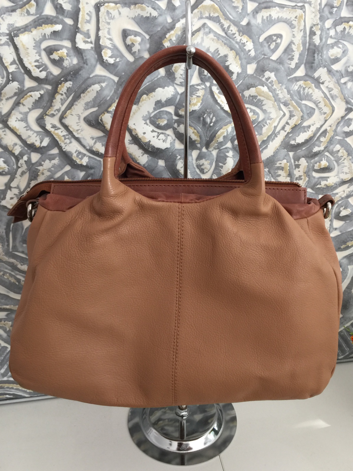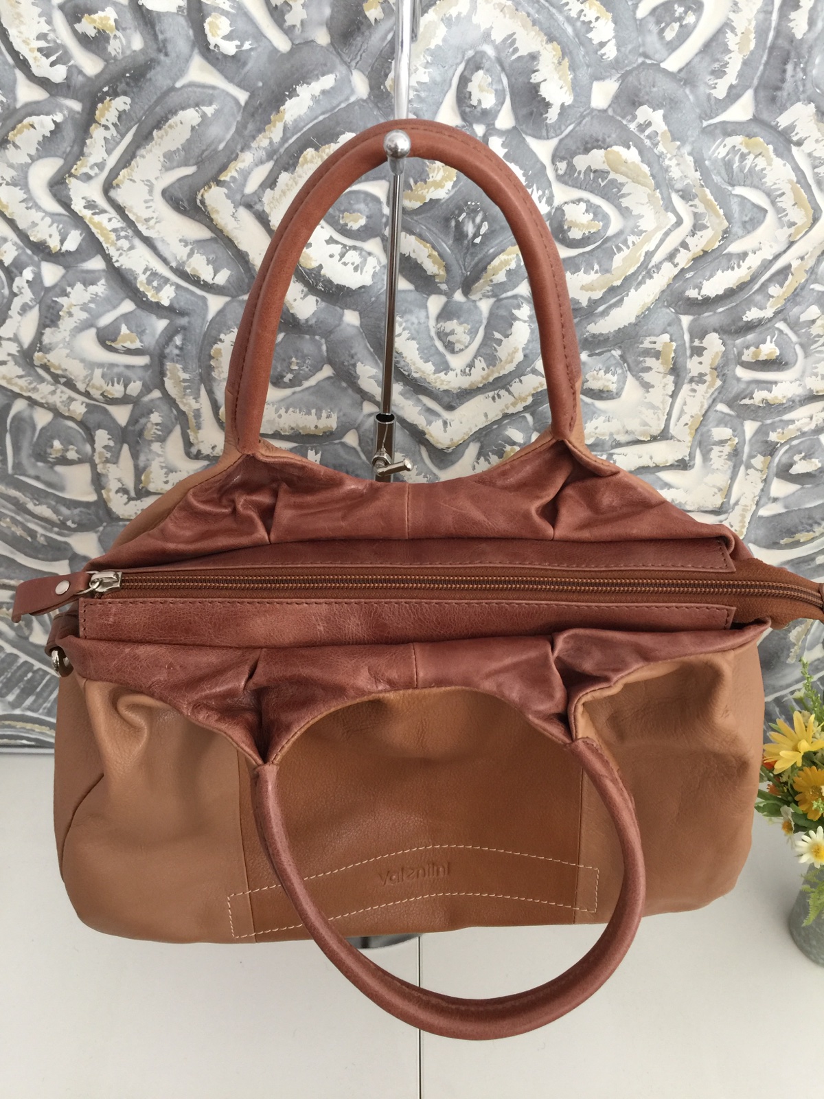 Kožená nenosená kabelka,krásnej koňakovej farby, má aj dlhý popruh, takže sa dá nosiť aj na ramene,alebo crossbody.