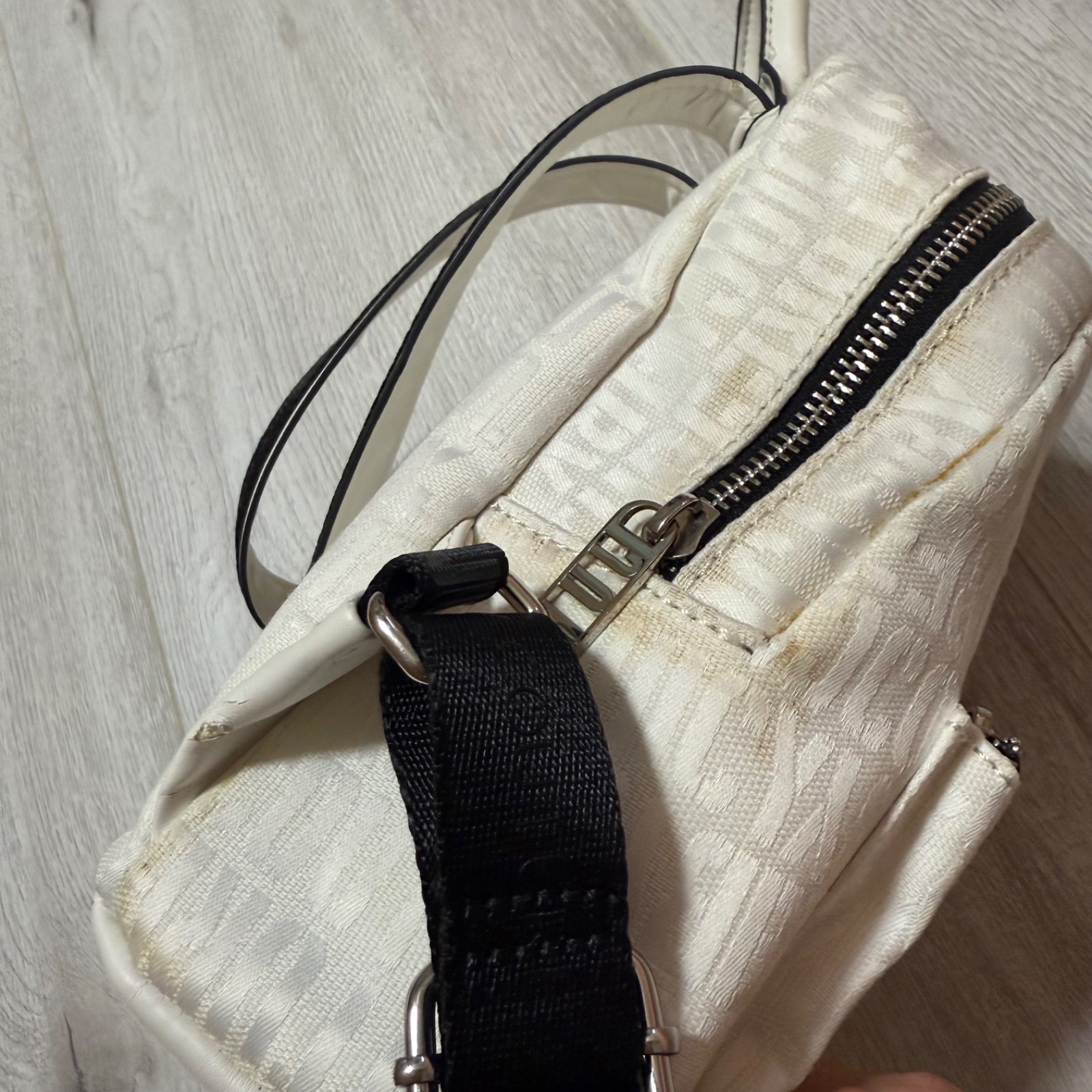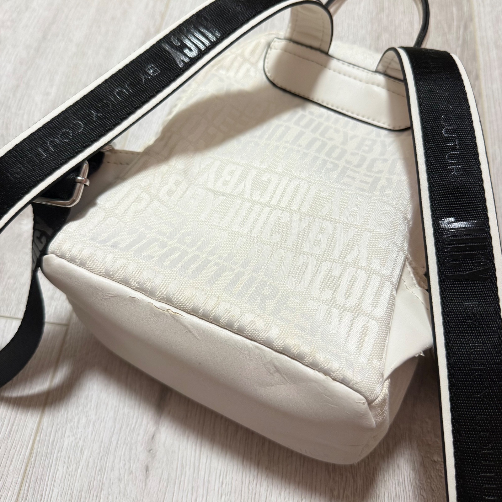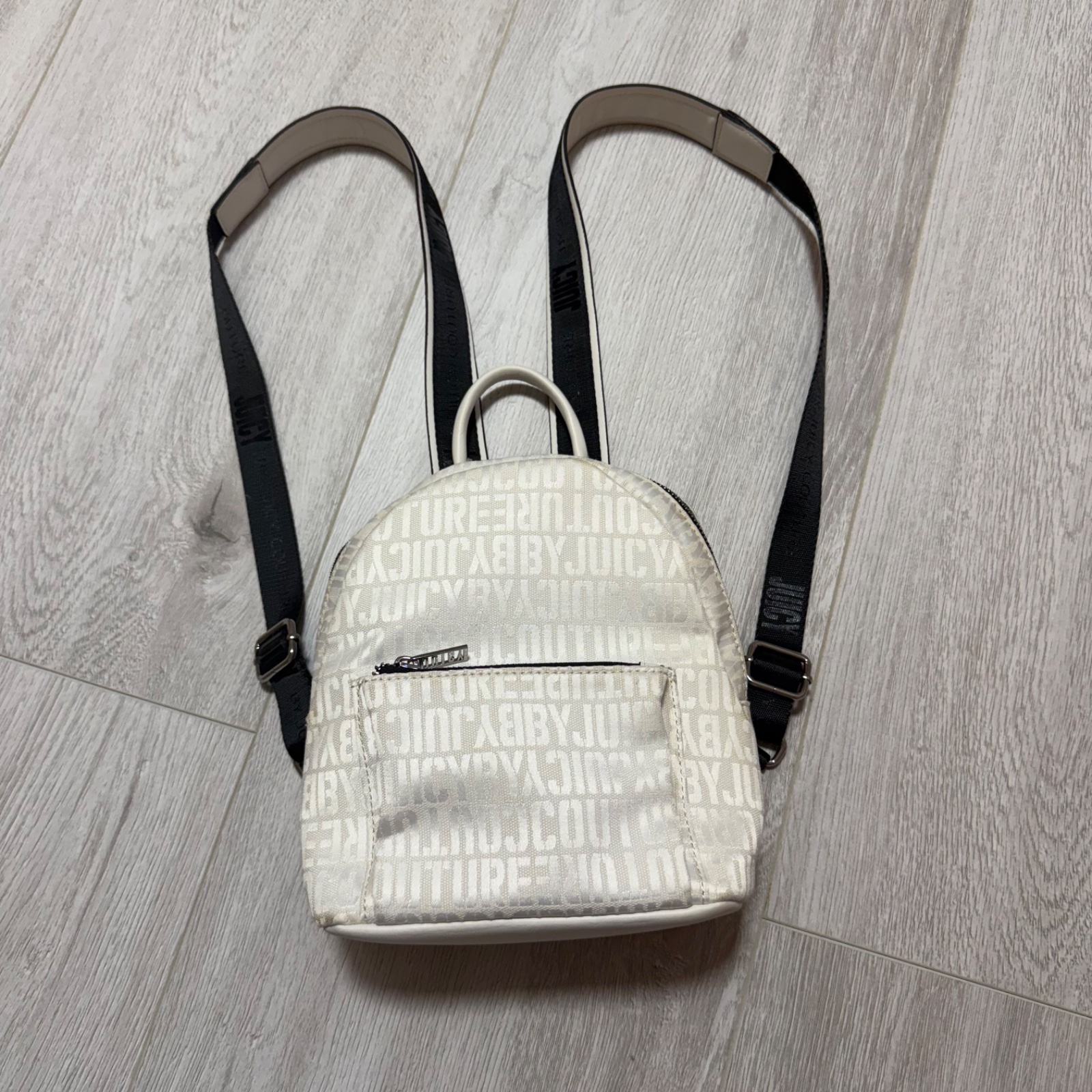 🤍🖤🤍 Predám malý ruksak ORIGINÁL zn. Juicy Couture. Hoci bol minimálne používaný a potom len skladovaný, na viacerých miestach sa začala olupovať koženka a miestami zažltla látka akoby presiaklo lepidlo použité pri výrobe (viď foto). Cena symbolická oproti pôvodnej PC 200€.