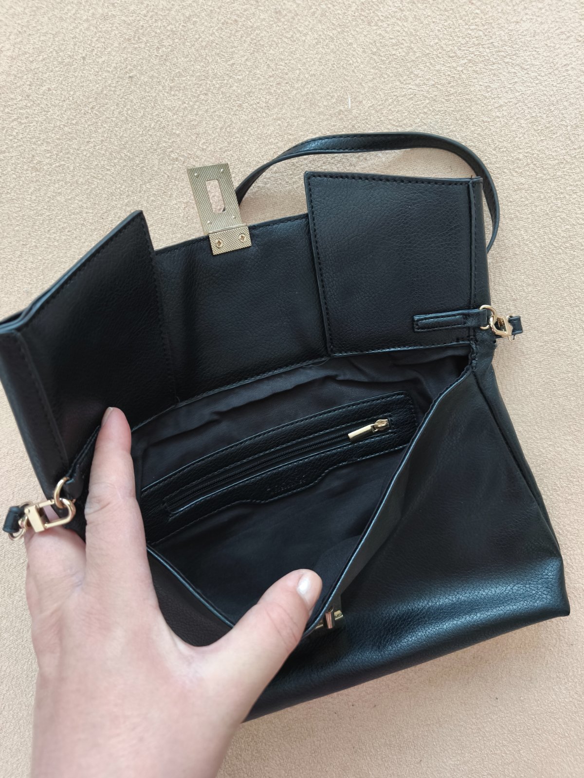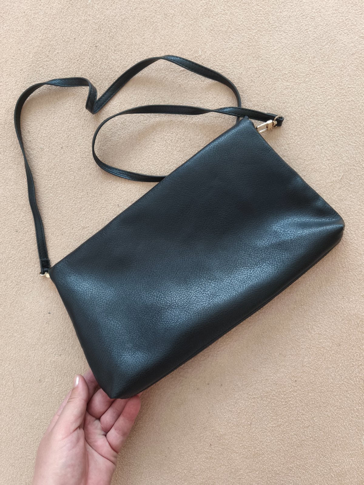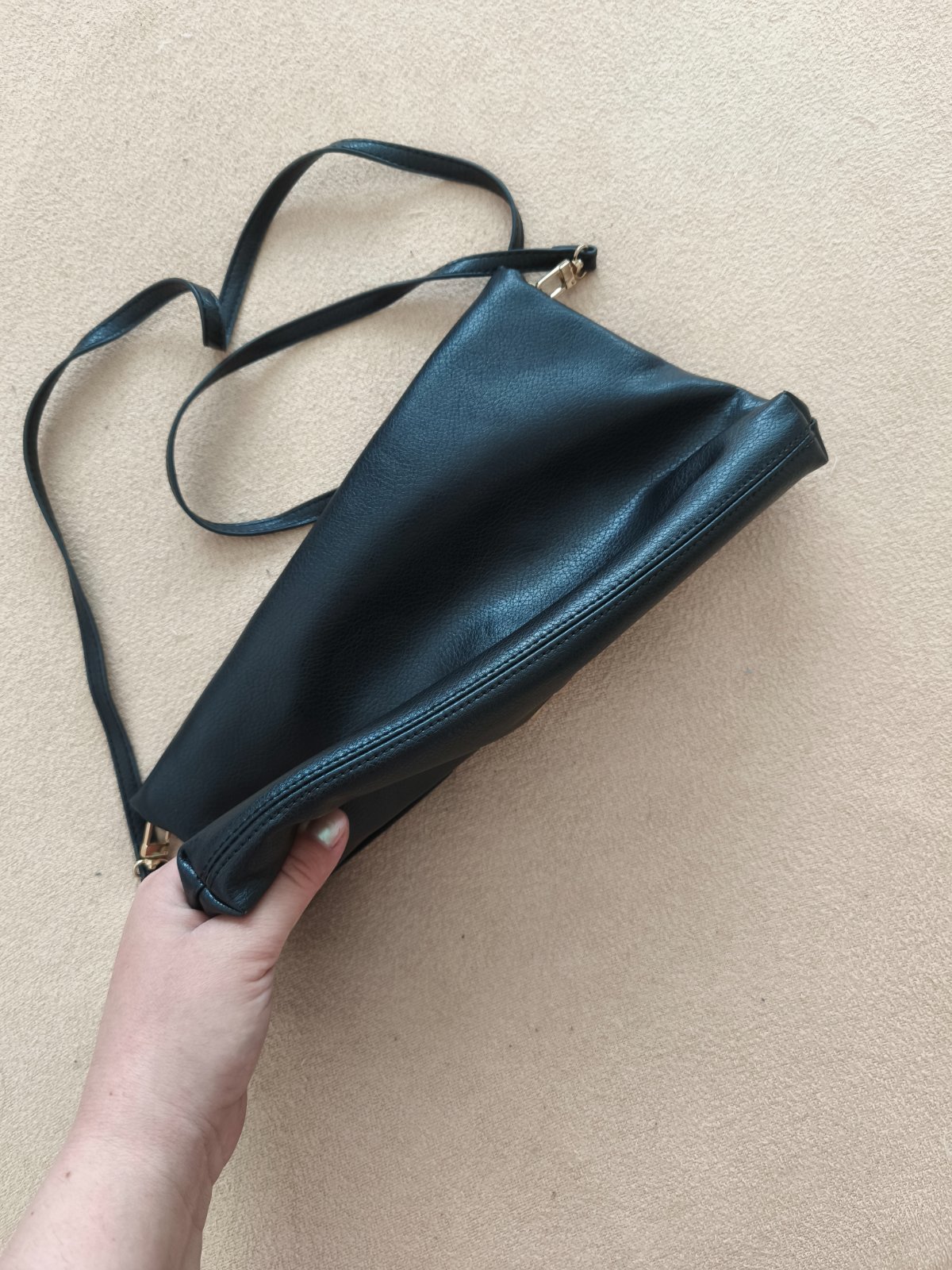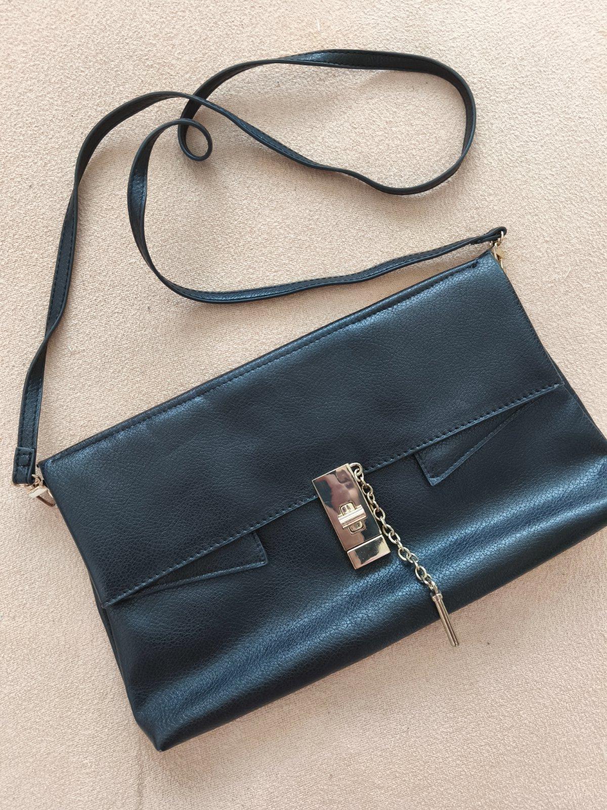 Čierna listová kabelka kľudne na bežné nosenie, bez poškodenia.