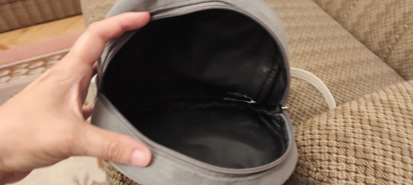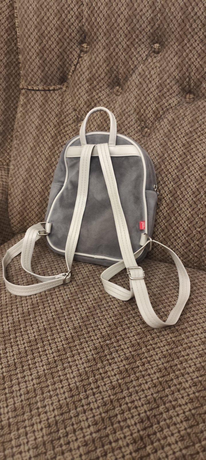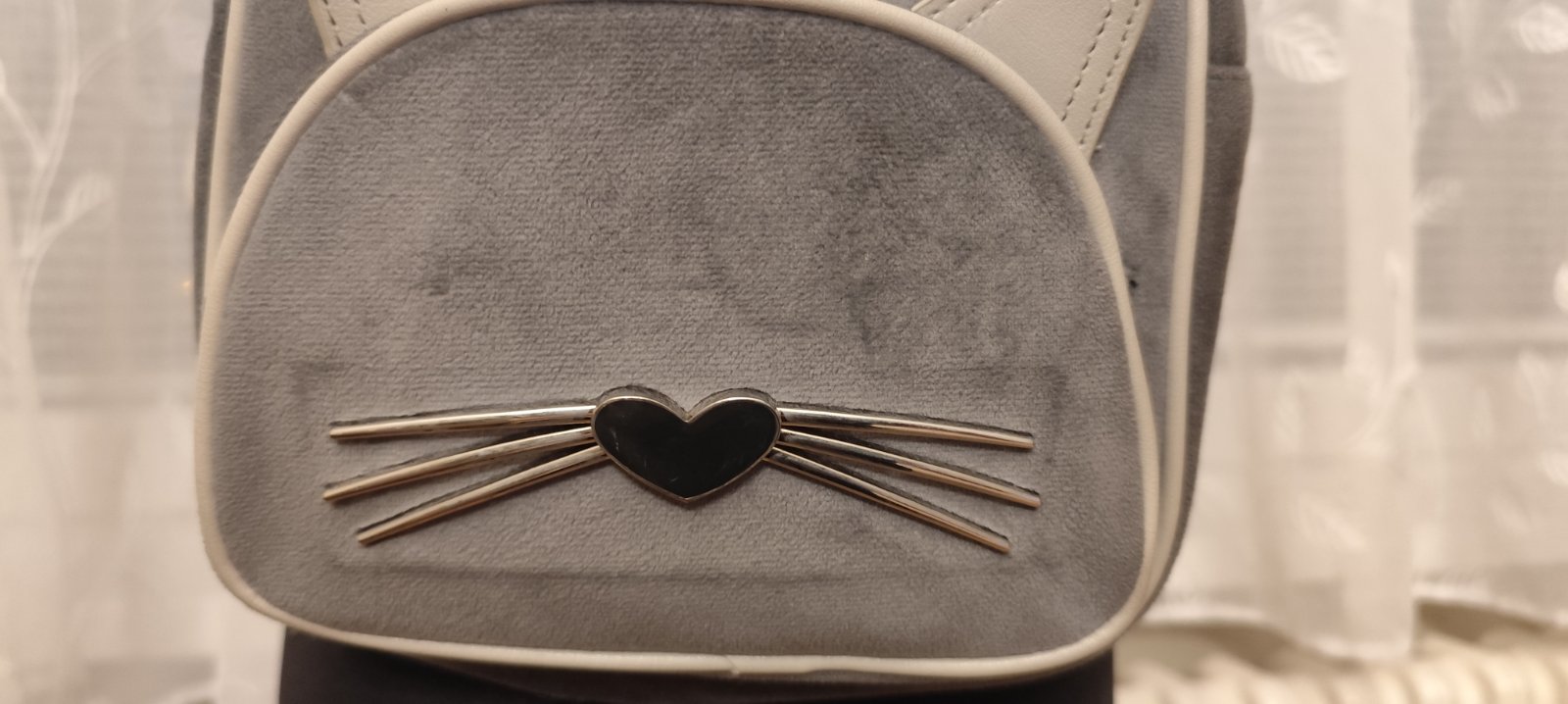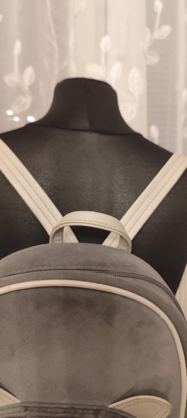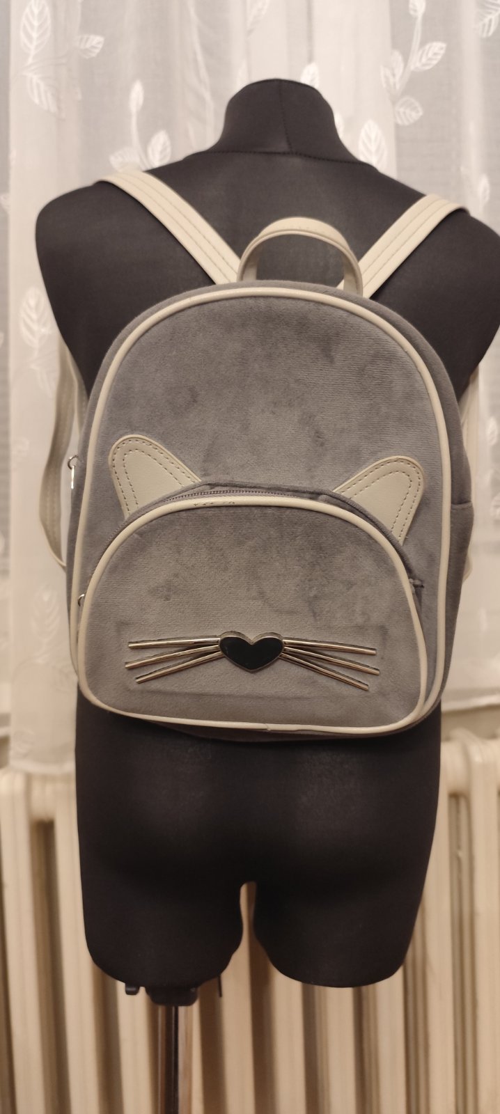 Predám krásny plyšový ruksačik.. Má dve priehradky, koženkové remienka. Rozmery: výška 23cm, šírka 22cm v najširšej časti a hrúbka 5cm.