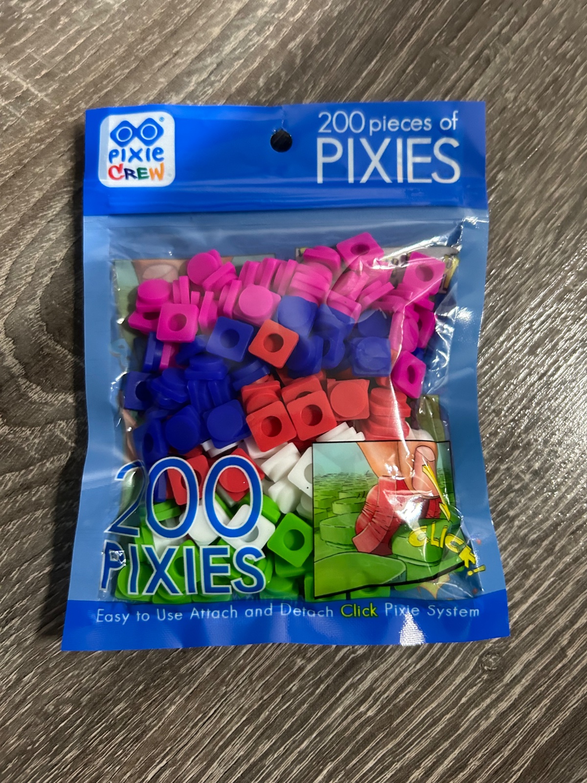 Ku každému batohu zadarmo prikladáme balíček približne 200 ks veľkých pixelov a minigalériu pre inšpiráciu. Pre ďalšie vytváranie obrázkov ponúkame na dokúpenie veľké pixely v 24 farbách. Inšpiráciu môžete tiež čerpať na stránkach pixiecrewgallery . Pre neobmedzené vytváranie obrázkov odporúčame na dokúpenie malé PIXIES, ktoré ponúkame v 24 farbách alebo PIXIES s písmenami alebo multipixely (pixel o veľ. 2×2 body) s obrázkami.