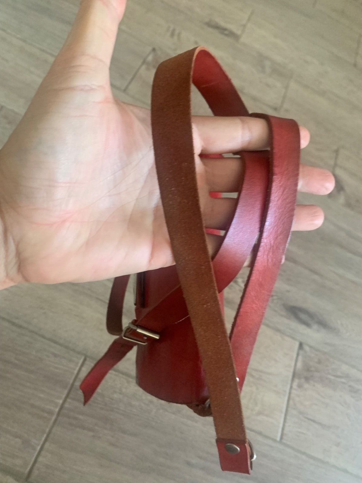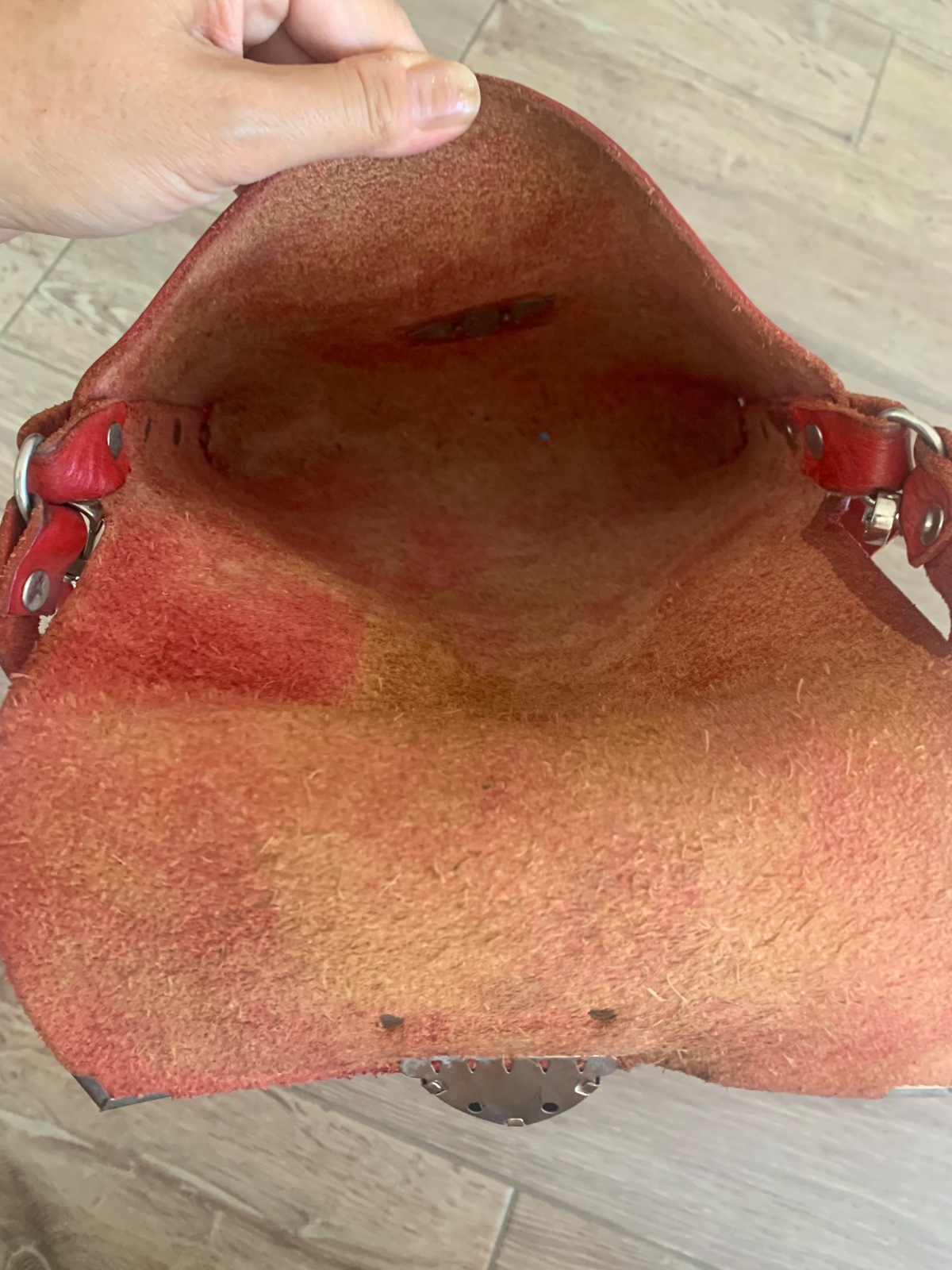 ručne vyrábaná, z 1 kusu kože, nitovaná, bez šitia